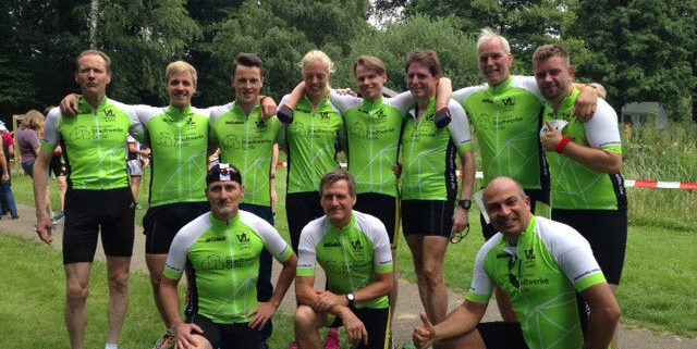 Volkstriathlons 20 Radtrikots von ihrem neuen Sponsor Stadtwerke Celle durch deren Geschäftsführer Thomas Edathy und Fiete dem Frosch überreicht. Mit neuer Energie starteten gleich 10 VfL’er durch und erzielten einige beachtliche Erfolge.
