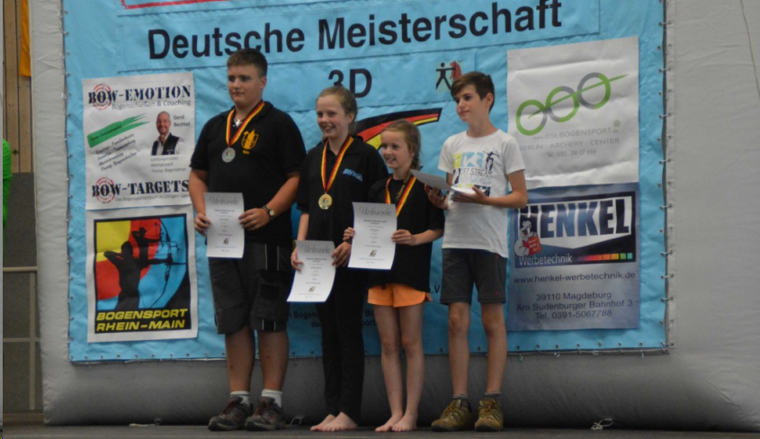 Mit einem Meistertiteln in den Altersklasse Blankbogen U12(männlich + weiblich) und einem vierten Platz in der Altersklasse Blankbogen U14(männlich+ weiblich) beendeten Laetitia und Julius Potempa vom VfL Westercelle die Deutsche Meisterschaft „3D“ des Deutschen Bogensportverbandes (DBSV), die am 13. Und 14. August in Ballhausen (Bayern) stattfanden.