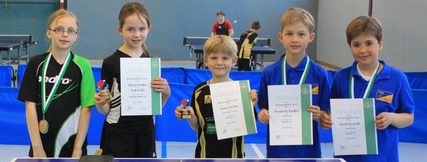 Bei den Kleinsten griffen zwei Mädels und drei Jungs zu ihren Schlägern. Ohne Westerceller Starterin konnte sich Maria Endler (TuS Celle) den ersten Platz vor Anique Cecil Breitrück (TSV Wietze) sichern.