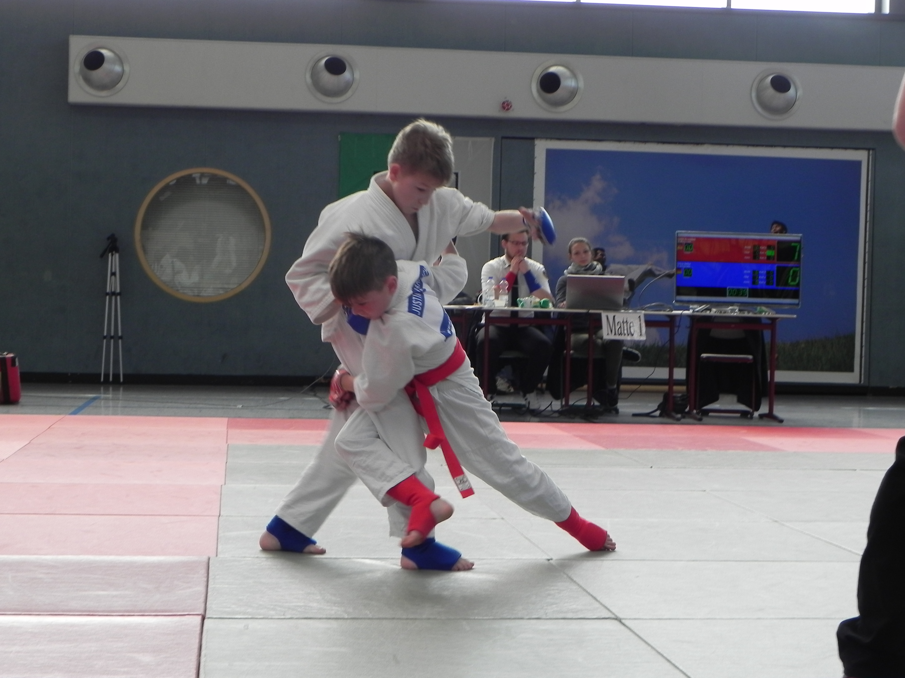 Für Isha Njingo, mit acht Jahren die Jüngste im Team des VfL, war es erst das dritte Turnier. Sie hatte leider das Pech, dass sie als Einzige in ihrer Alters- und Gewichtsklasse antrat und deshalb in eine höhere Klasse, U12 bis 54 kg, eingestuft wurde. Ihre Gegnerinnen hatten zwar große Vorteile in Reichweite und Erfahrung, jedoch konnte sich Isha mit einer beherzten Leistung am Ende den dritten Platz sichern. Zu einem vereinsinternen Duell kam es im Finale in der Klasse U12 bis 30 kg zwischen Justin Gramlich und Finley Selke. Beide konnten ihre Vorkämpfe souverän für sich entscheiden und wollten nun auch das Finale gewinnen. Nach einem spannenden und dynamischen Kampf, konnte sich Justin am Ende nach Punkten durchsetzen. In der Klasse U12 bis 45 kg konnte Marcel Krause den ersten Kampf mit Full Ippon beenden. Von seinem zweiten Gegner ließ er sich allerdings überraschen und musste sich seinerseits vorzeitig geschlagen geben. Zum Schluss konnte sich Marcel mit der Bronzemedaille trösten. Eine weitere Silbermedaille für den VfL gewann Marc Marx in der Klasse U15 bis 55 kg. Im Kampf um Gold musste sich Marc bei Punktgleichstand nur durch den Ipponvorteil seines Gegners geschlagen geben. Melissa Chevalier zeigte eine überzeugende Leistung in der Klasse U15 bis 52 kg. Ihre Kämpfe konnte sie alle in den ersten 30 Sekunden vorzeitig durch Full Ippon gewinnen und sicherte sich überlegen den 1. Platz. Die Bronzemedaille in der U18 bis 60 kg gewann Simon Fukas. Der aktuelle Deutsche Meister konnte aus Mangel an Konkurrenten leider nicht in seiner angestammten Klasse bis 55 kg kämpfen. Zusätzlich sollte er, als Vorbereitung für die in zwei Wochen stattfindenden German Open, bestimmte Techniken und Taktiken anwenden. Insgesamt konnte Simon die Vorgaben der Trainer gut umsetzen. Auch den Kampf gegen den Drittplatzierten der letzten Deutschen Meisterschaft dieser Klasse aus Bernau, konnte er lange offen gestalten und verlor nur knapp nach Punkten.