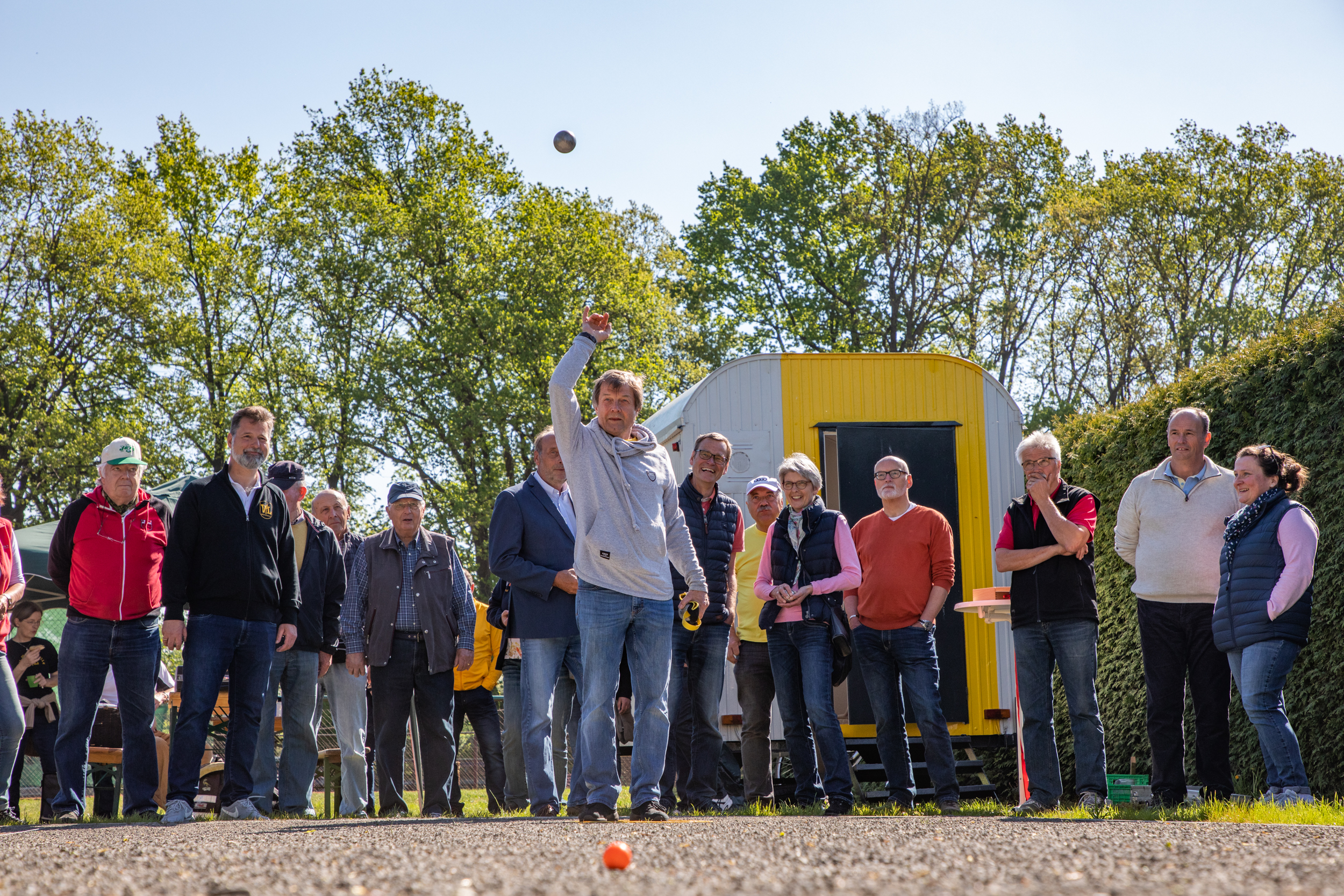 Nach dem offiziellen Teil, der mit der Eröffnung des Durchschneidens des roten Bandes auf dem Bouleplatz, begann, konnten bei Snacks und Kaffee zunächst die theoretischen Voraussetzungen des in Westercelle gespielten „Petanque“ Spieles erklärt und erörtert werden.
