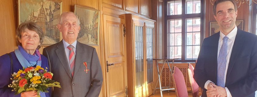 Im corona-bedingt kleinen Rahmen wurden Urkunde und Ehrenzeichen durch Oberbürgermeister Dr. Jörg Nigge ausgehändigt. Dabei ließ dieser das Wirken des neuen Würdenträgers rund um „seinen“ Ortsteil nochmals Revue passieren. „Alles was Sie tun, ist von Liebe und Verbundenheit zu Ihrer Heimat getragen. Über Ihr unermüdliches Wirken gibt es wahrlich eine Menge zu berichten“, begann der OB seine Laudatio. Ob 20 Jahre Ortsratsarbeit, davon 5 als ehrenamtlicher CDU-Ortsbürgermeister, über die 1951 begonnene Mitgliedschaft beim VfL Westercelle mit 4 Jahren als Leiter der Handballsparte, 10 Jahren als Vereinssportwart und 16 weiteren als Vereinsvorsitzender bis hin zum leidenschaftlichen Chronisten der Heimatgeschichte. Letzteres mündete nicht nur in regelmäßigen Beiträgen in der örtlichen Zeitschrift „Wir in Westercelle“, die schließlich Eingang in das zweibändige Werk „Erzähl doch was aus Westercelle“ fanden. In unzähligen Recherchestunden im Stadtarchiv und nicht minder vielen Gesprächen mit Zeitzeugen, entstand eine Sammlung von Anekdoten, Histörchen und Ereignissen der Dorfgemeinschaft im Spiegel der Jahrzehnte. Damit nicht genug, veröffentlichte Rauterberg zudem noch eine Abhandlung über Geschichten der Schulen in Westercelle.