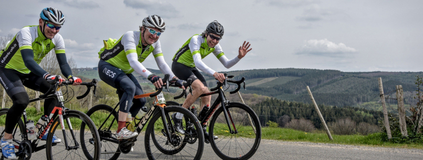 Nach einem langen Winter entschieden sich die VfL’er für die 147 km lange Strecke mit knapp 3000  Höhenmetern. Diese Runde enthielt viele Schlüsselstellen des Profirennens wie den Cote de Wanne,  den Cote de Stockeau, den Cote de la Redoute und den Col du Rosier .