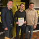 - Michael Dümeland wird mit der Silbernen Ehrennadel für jahrelanges Engagement als Trainer und Abteilungsleiter Handball geehrt. Links der 1. Vorsitzende Harald Nowatschin, rechts sein Stellvertreter Heiko Vollmer