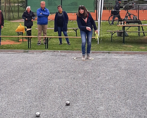 Nun folgte das Finale mit Ulrike (Platz1) und Inge (Platz 2). Auch hier sahen die Zuschauer ein sehr anspruchsvolles Spiel mit vielen gekonnten Würfen. Beide Teilnehmerinnen nutzen ihr gesamtes Repertoire, sodass der Ausgang des Spieles lange offen blieb. Am Ende setzte sich aber Ulrike durch, die somit die Rangliste anführt und auch die Damen-Vereinsmeisterschaft gewann.