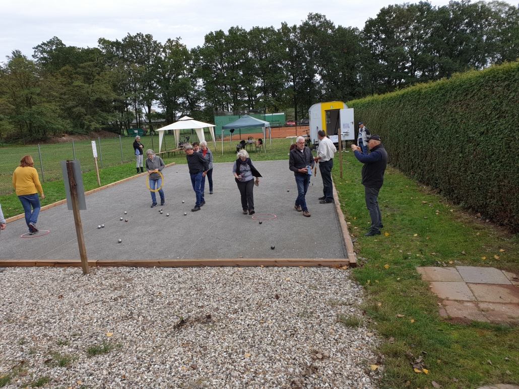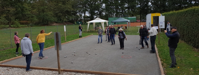 Zum Saisonabschlussturnier am 19.10. waren auch Gäste der Boule Gruppe aus Großburgwedel mit 3 Spielern vertreten. Insgesamt wurden 14 Teilnehmer in 7 Mannschaften mit jeweils 2 Spielern (Doublette) aufgeteilt.