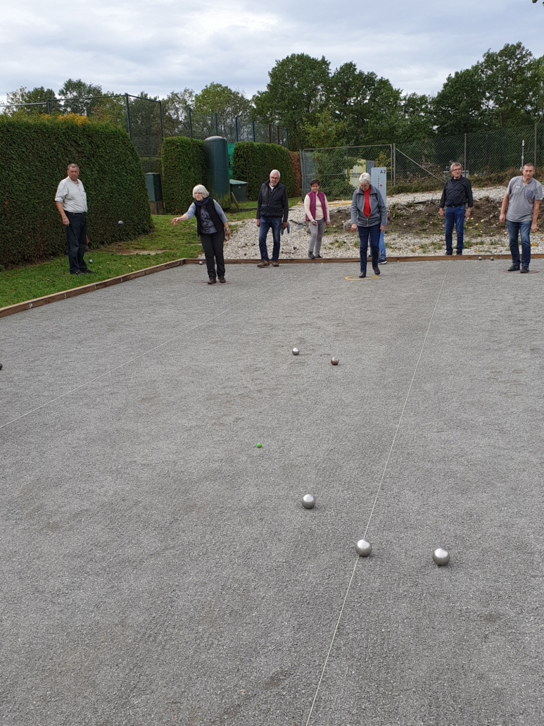 Vor Beginn des Turniers stärkte man sich erst einmal mit Zwiebelkuchen. Nach anfänglichen Tropfen riss der Himmel auf. So erlebten alle einen fröhlichen Nachmittag auf unserer neuen Boule Anlage, bei dem mit sportlichem Ehrgeiz Taktiken entwickelt wurden, umso dem Schweinchen auf den Pelz zu rücken und den Gegner auszuspielen. Nach 3 Spielrunden konnte die Siegermannschaft ermittelt werden. Ein Abschlussessen rundete das gesellige und gelungene Boule Turnier ab.