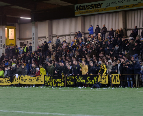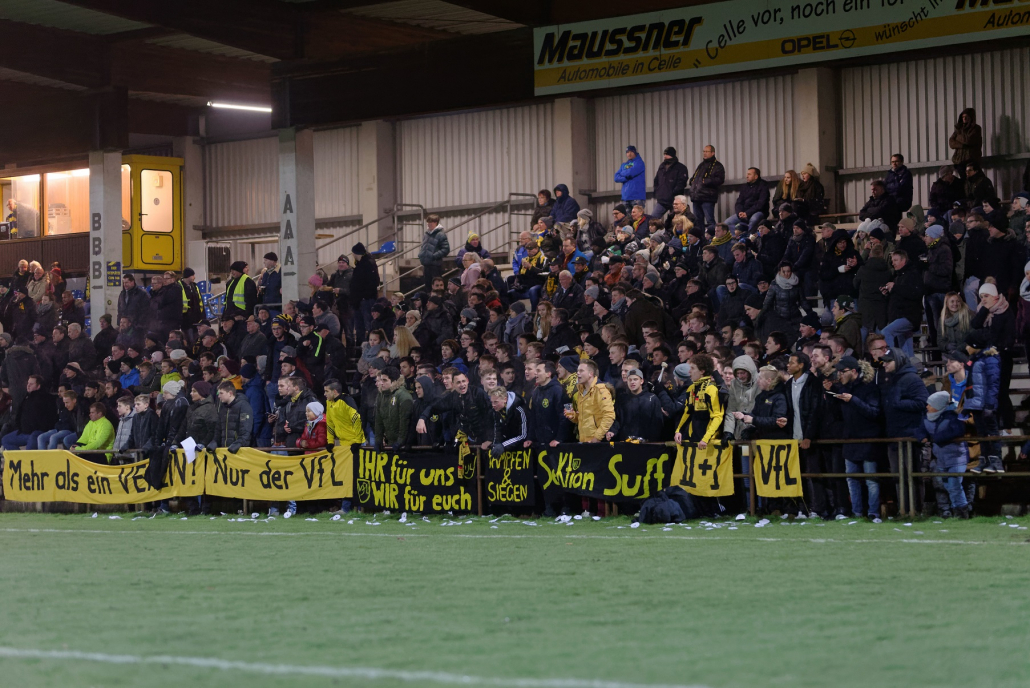 Riesen-Kulisse im Bezirksliga-Derby: Rund 500 VfLerinnen und VfLer unterstützen die 1. Herren um die Trainer Heiko Vollmer und Axel Güllert beim Auswärtsspiel beim TuS Celle FC. Insgesamt kommen über 700 Zuschauerinnen und Zuschauer zu der Partie im Günther-Volker-Stadion, die der TuS FC 1:0 gewinnt. Heiko Vollmer und Axel Güllert hatten die 1. Herren zum Beginn der Saison 2016/17 von Holger Kaiser übernommen.