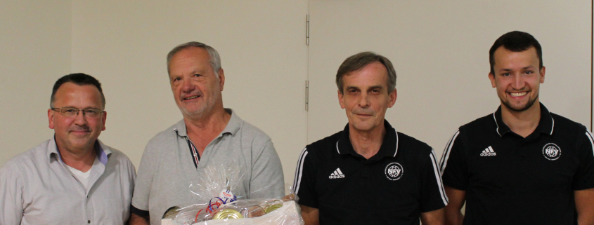 /in FußballNach dem Spiel der 1. Herren gegen die Elf des Jahrzehnts, dass torreich mit einem 6:6 endete, verabschiedete sich der VfL von vier verdienten Spielern, die die 1. Herren verlassen werden. Sie alle hatten großen Anteil an den Erfoglen des VfL in den letzten Jahren. Von links nach rehcts sind dies: