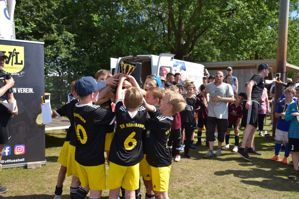 De Waardt zog vor dieser Leistung seinen Hut: „Es ist alles wie am Schnürchen gelaufen, der Zusammenhalt in diesem Verein ist der absolute Wahnsinn.“, sprach der Turnierleiter ein großes Lob auf die freiwilligen Helfer aus: „Ich möchte mich ausdrücklich bei allen Helfern in diesem Verein bedanken. Es war einfach ein großes Fest.“ Am meisten genossen jedoch die zahlreichen Jugendkicker dieses Fest, welche bei der Tombola tolle Preise abräumen und sich nach dem anstrengenden Spieltag mit einem Besuch im Westerceller Freibad abkühlen konnten. Viele von ihnen werden auch im nächsten Jahr wieder dabei sein, wenn das Turnier in seiner 17. Ausgabe dank des Kunstrasenplatzes noch attraktiver wird.