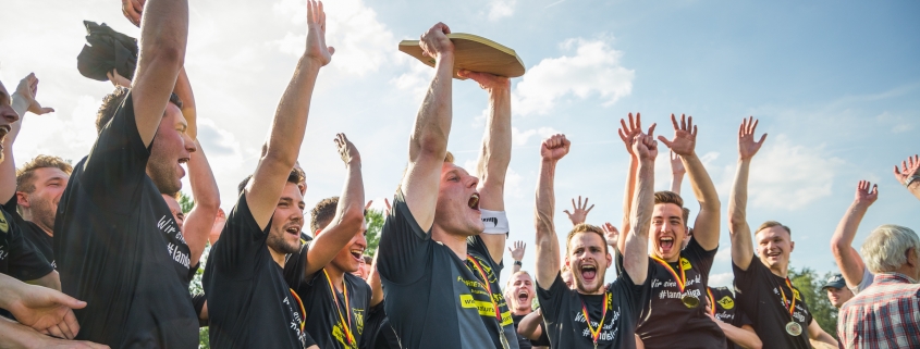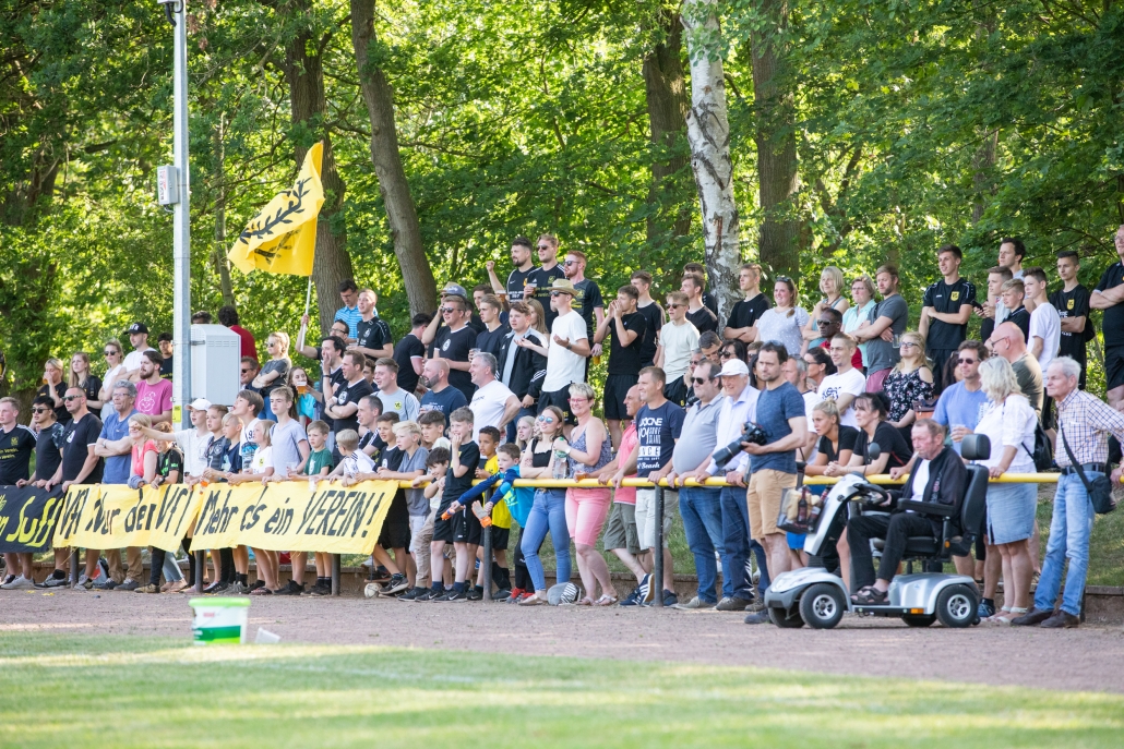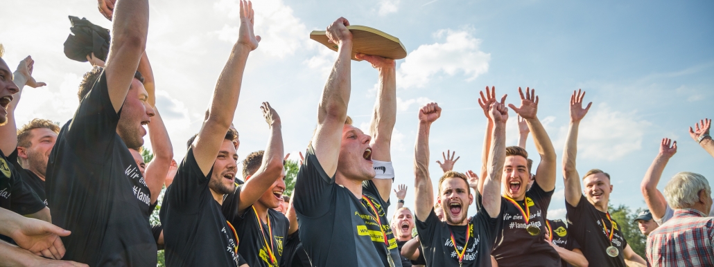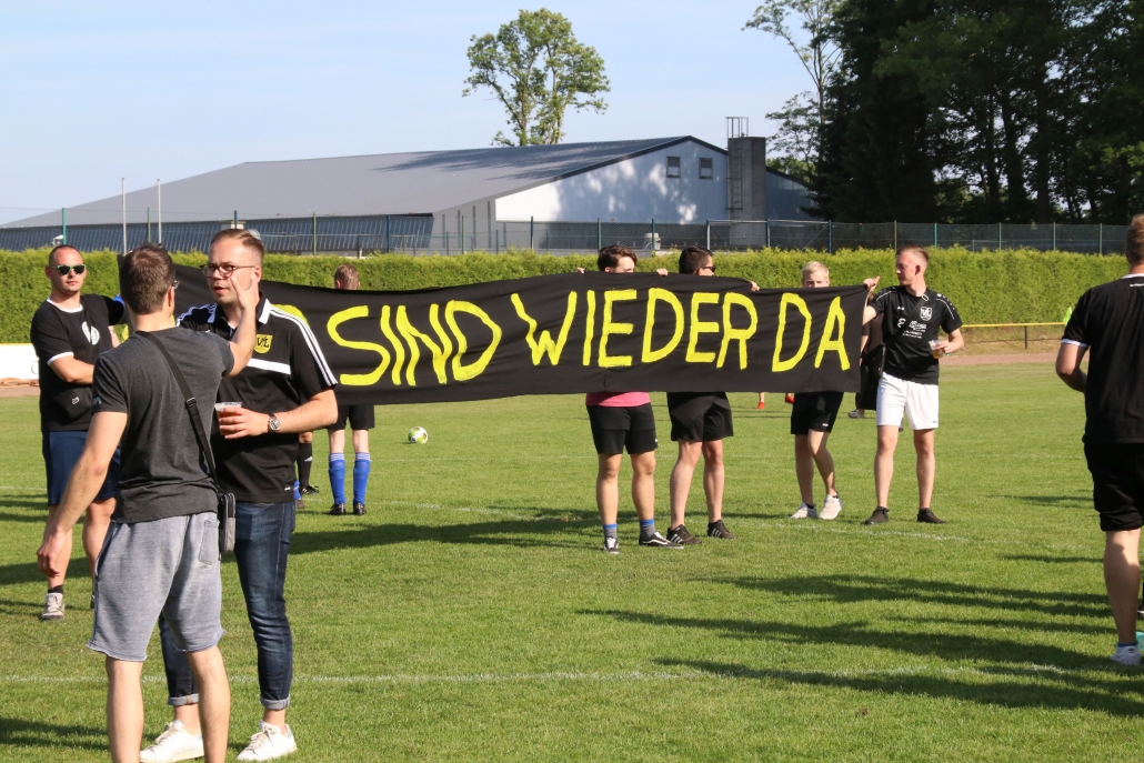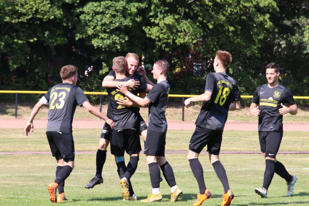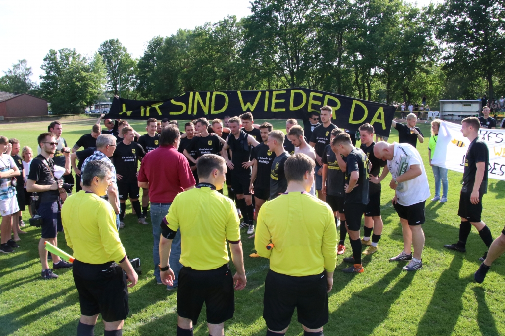 Für das Endspiel der Ersten Herren Anfang Juni hatten sich die zahlreichen Westerceller Fans ganz besondere Aktionen ausgedacht, um die Mannschaft akustisch und visuell bestmöglich zu unterstützen. Mit einem Punkt Vorsprung auf den Verfolger TSV Elstorf hatte die Mannschaft ihr Schicksal selbst in der Hand und war sich der wichtigen Aufgabe bewusst – souverän, wenn auch zu Beginn angespannt nahm das junge Team die letzte Hürde auf dem Weg zurück in die Landesliga. Und dann durfte gefeiert werden.