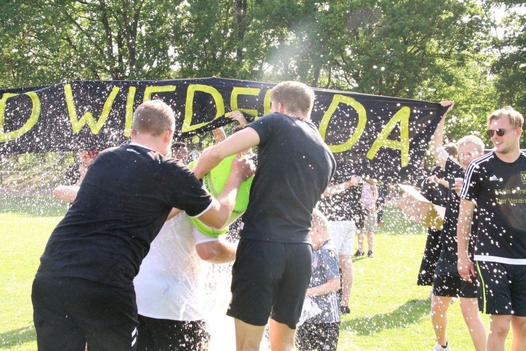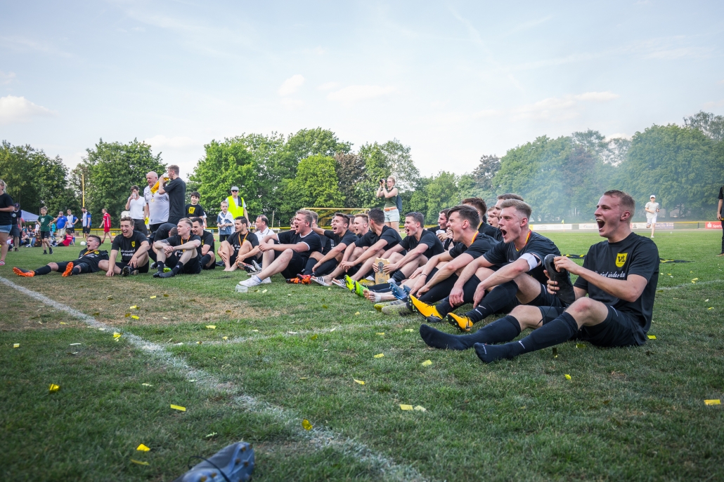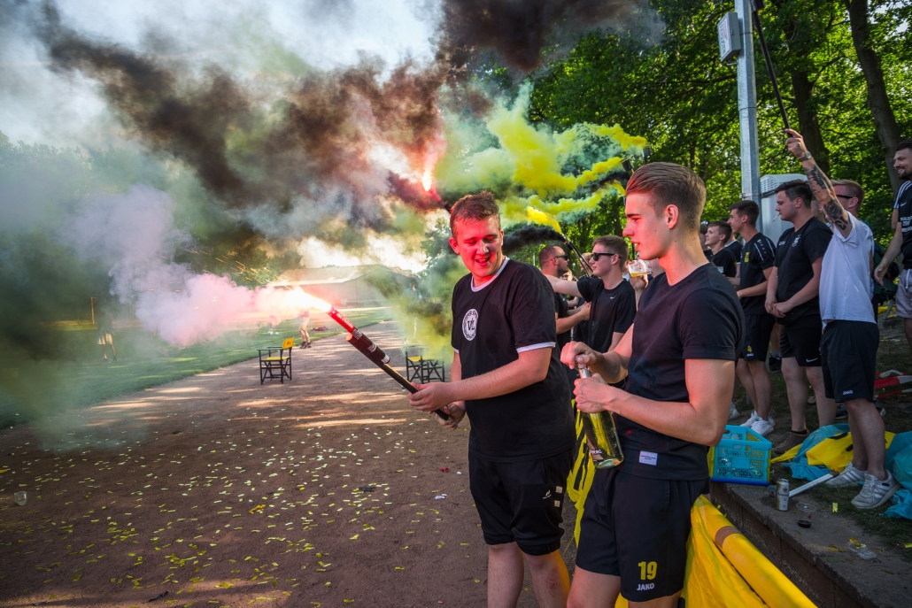 Sprechchöre, Banner, Luftballons, Rauchbomben, Humbas, Bier- und Sektduschen – die Schwarz-Gelben ließen es für ihre Helden an nichts mangeln. „Es war für die Feier natürlich perfekt, dass wir die Entscheidung am letzten Spieltag in der eigenen Hand hatten.“, freute sich Güllert über die Umstände des Aufstiegs. „Und wo gibt es das in der Bezirksliga, dass man den Meistertitel vor 450 Zuschauern mit einem solch tollen Rahmenprogramm feiern kann? Wir haben eine tolle Gemeinschaft in Westercelle, die ihres Gleichen sucht.“ Bis spät in die Nacht war das Sportheim der Dreh- und Angelpunkt der Feierlichkeiten, welche neben der Ersten Herren auch die zweite und dritte Mannschaft umschloss. Das Team von Trainer Nico Freier beendete die Saison trotz zwischenzeitlicher Verletzungssorgen auf dem neunten Rang der 4. Kreisklasse und hatte somit allen Grund, auf den Party-Zug aufzuspringen.