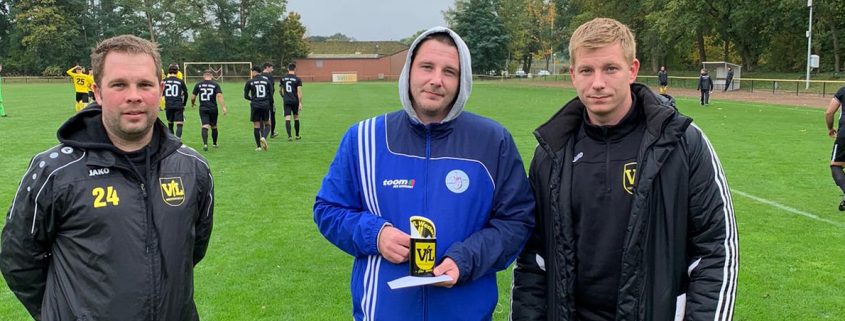 Vor dem Spiel der 2. Herren haben Spartenleiter Christopher Menge und Kapitän Timo Papendieck 450€ an den Vater der Sechsjährigen Mayla aus Wathlingen übergeben. Mayla leidet an Krebs und die Familie braucht Unterstützung. Zusammengekommen war das Geld beim Spiel der 2. Herren gegen den TS Wienhausen.