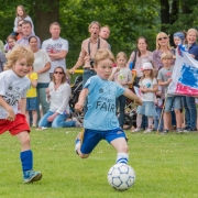 Die jungen Kickerinnen und Kicker im Kindergartenalter treten in zwei Gruppen gegeneinander an und haben die Chance, am Ende des Tages den Sieger- oder Fairness-Pokal in die Höhe zu recken.