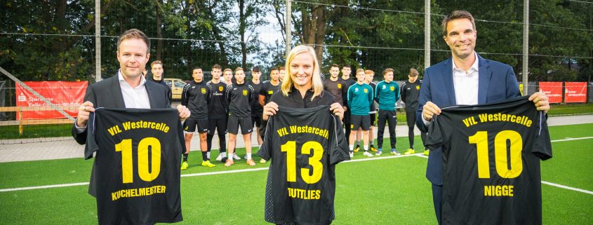 /in FußballNach langen Verhandlungen ist es uns gelungen, Oberbürgermeister Dr. Jörg Nigge sowie Dr. Patrick Kuchelmeister und Marleen Tuttlies von der Sparkasse Celle für unser Team zu gewinnen! Die drei sind besonders beim Elfmeterschießen nervenstark, wie sie bei der Eröffnung des Kunstrasenplatzes im Februar bewiesen haben. Da sowohl Nigge als auch Kuchelmeister mit der 10 auflaufen [… weiterlesen]