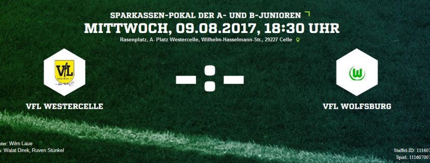 Nach dem 5:0-Auftakterfolg beim VFB Fallersleben kommt in der nächsten Runde des NFV-Sparkassenpokals eine der Topmannschaften Deutschlands nach Westercelle. Die Auslosung ergab, dass der VfL Wolfsburg aus der B-Junioren Bundesliga der nächste Gegner sein wird. Co-Trainer Maximilian Bähr ist im Vorfeld voller Euphorie: „Das ist für uns das absolute Saisonhighlight, die Jungs haben sich das hart erarbeitet.“