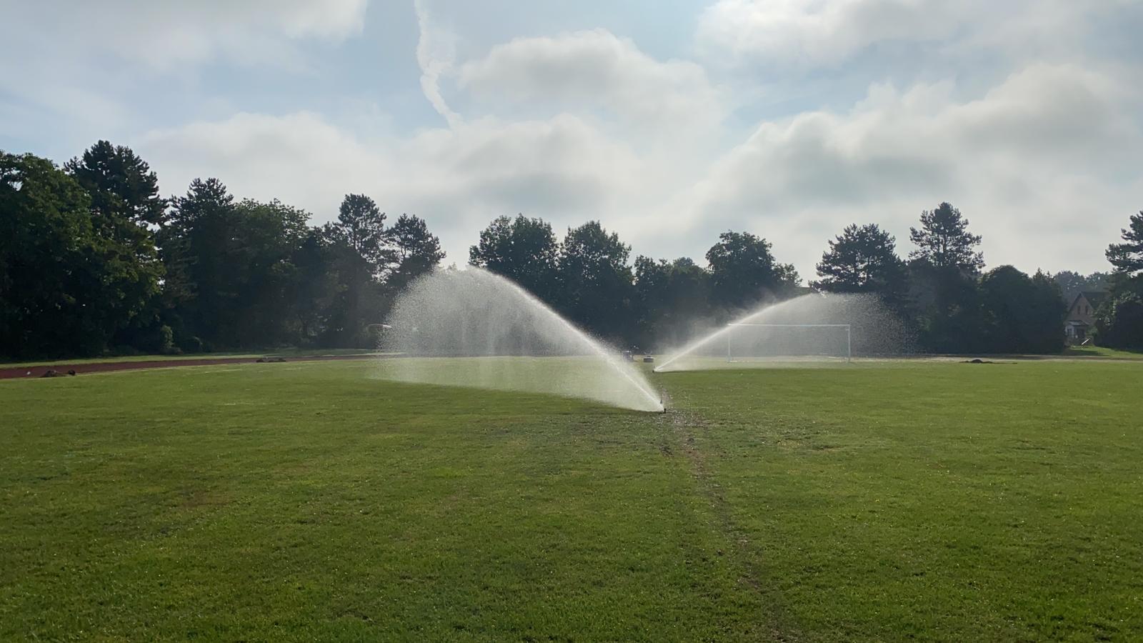 „Wir konnten die Pumpe bisher nur für ca. zwei Stunden starten“, berichtet Menge. „Danach musste jemand zum Platz fahren, die Regner verstellen und die Pumpe wieder starten.“ Da tagsüber Sportunterricht auf dem Platz stattfindet, mussten die Regner zudem morgens um 7 Uhr vom Platz geräumt und nachmittags wieder aufgestellt werden. „Im Idealfall wird ein Fußballplatz nachts beregnet, doch einen Ehrenamtlichen zu finden, der jede Nacht um 3 Uhr die Sprenger umstellt, ist unmöglich“, sagt Menge.