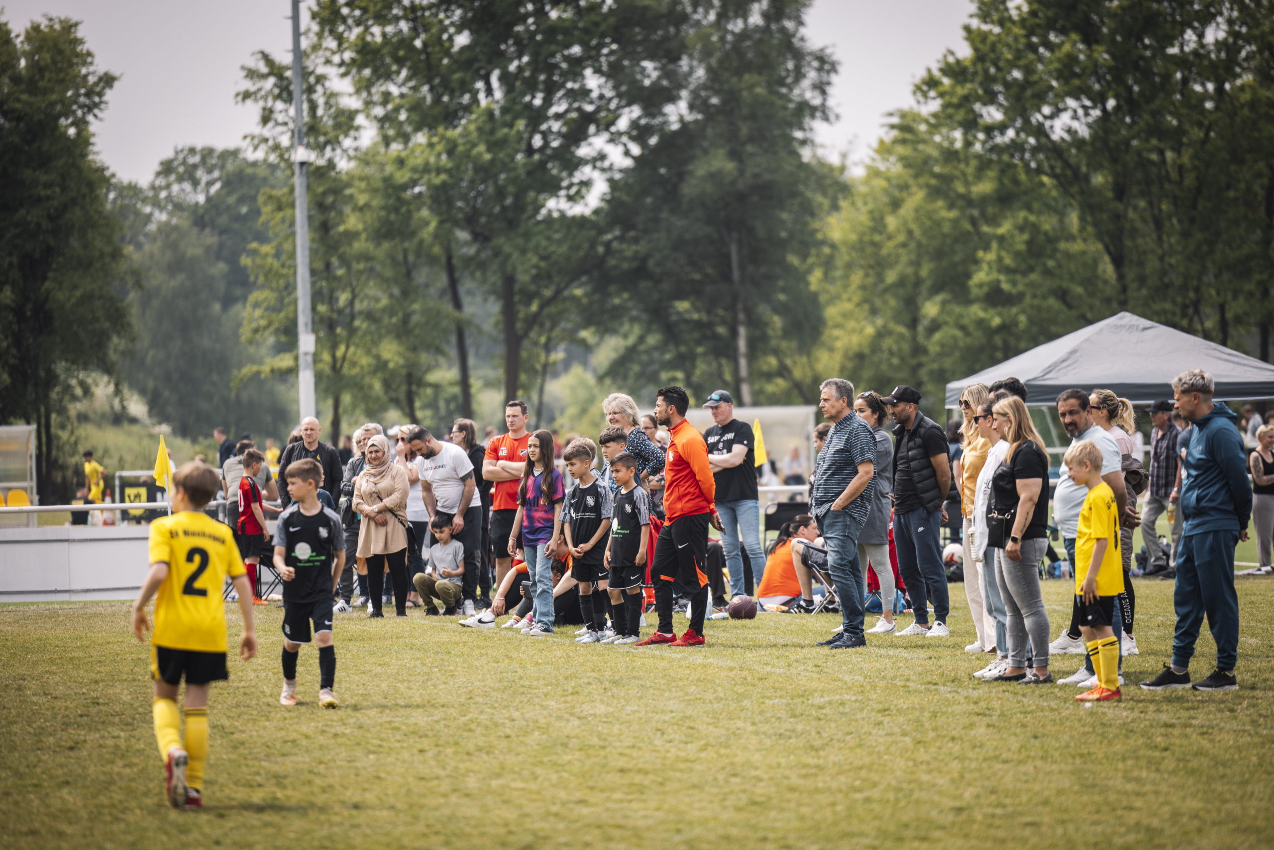 Die Freude über die Rückkehr des Jugendturniers und die Möglichkeit, sich mit Mannschaften aus ganz Niedersachsen und darüber hinaus zu messen, konnte dabei auch nicht das gemischte Wetter trüben: Denn neben hunderten von Spielern, Eltern und Zuschauern ließ sich auch der Regen teilweise blicken. „Das Rahmenprogramm abseits der Spielfelder wurde sehr gut angenommen“, konnte Turnierleiter Paschke dennoch berichten. Besonders die Fußball-Dart-Scheibe schien dabei durchgehend Zielobjekt der jungen Fußballer-Ambitionen gewesen zu sein – immerhin stand mit ein bisschen Genauigkeit, Schusskraft und Glück ein hochwertiger Fußball auf der Preisliste, welcher von der VGH gesponsert wurde.