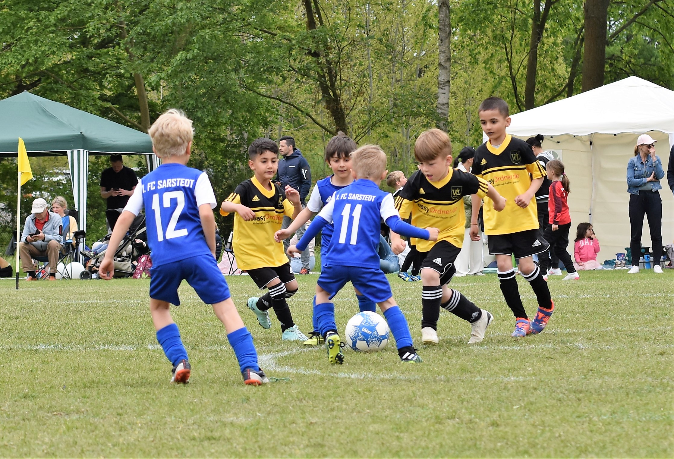 /in FußballAm Ende waren von den angekündigten 112 Mannschaften aufgrund einer kurzfrpstigen Absage tatsächlich 111 am Start – ein neuer Teilnahmerekord! Und sind wir ehrlich, die Zahl ist auch viel schöner. Zwei Tage bei besten äußeren Bedingungen, viel Fußball, viel, Kuchen, viele Brötchen, viel Slusheis, viele Lose und viele glückliche Gesichter. Nicht jeder konnte beim Fußball gewinnen, dafür an der großen Dartscheibe oder bei der Tombola.