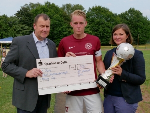 Das von vielen erhoffte Finale zwischen den beiden besten Celler Teams bot dann ansehnlichen Fußball mit den erwarteten Vorteilen für Eintracht, die das Finale letztlich verdient mit 2:0 gewannen. Ausgerechnet Alex Laube, der bis vor wenigen Wochen ausschließlich für den VfL auf dem Platz stand, traf. „Da hätte man fast drauf wetten können, dass ich ein Tor schieße“, meinte Laube anschließend fast schon beschämt. Für ihn war es „generell ein sehr komisches Gefühl auf der VfL-Anlage zu sein und keine schwarz-gelben Klamotten zu tragen und gegen die Jungs zu spielen.“ Dennoch war er natürlich froh über den Sieg.