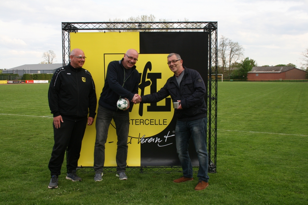 Den DFB-Ehrenamtspreis, den ihm der Kreisspielausschussvorsitzende Achim Prüße (rechts) im Beisein von Jugendleiter Marc Siegesmund (links) übergeben hat, hat sich der derzeitige Trainer der zweiten U13-Mannschaft somit mehr als verdient.