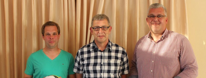 Das Foto zeigt von links: Abteilungsleiter Fußball VfL Westercelle – Christopher Menge, Vorsitzender Spielausschuss – Achim Prüße, Vereinsvertreter MTV Eintracht Celle – Norbert Reiche.