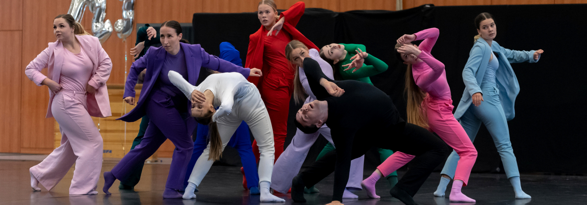 Am Samstag machte sich die Bundesliga-Formation Vitesse auf den Weg nach Bielefeld zum Auftaktturnier der 2. Bundesliga Nord/Ost-West. Im Gepäck hatten sie das Stück „How it ends“, die Fortsetzung der Turnierchoreografie von 2020. Choreografiert wurde das Stück von Andreas Schmidt, der die Formation ebenfalls trainiert und auch selber als Tänzer auf der Fläche stand. In dem Stück kämpfen die 12 Superhelden erneut in knallbunten Kostümen gegen ihren unsichtbaren Feind Mr. X. Unterstützt wurde Schmidt von Marc Bongardt, der langjährige Erfahrung als Trainer im JMC, als auch im Standard und Latein Tanz mitbrachte. Er spezialisierte sich vor allem auf die Bilder und Raumwege in dem Stück. Ebenfalls arbeitete er mit Schmidt an der Musik, hier entstanden temporeiche 4 Minuten in denen es kaum Zeit zum Verschnaufen gab. Da Schmidt selber als Tänzer auf der Fläche stand übernahm Bongardt ebenfalls die Trainerfunktion am Turniertag selbst.