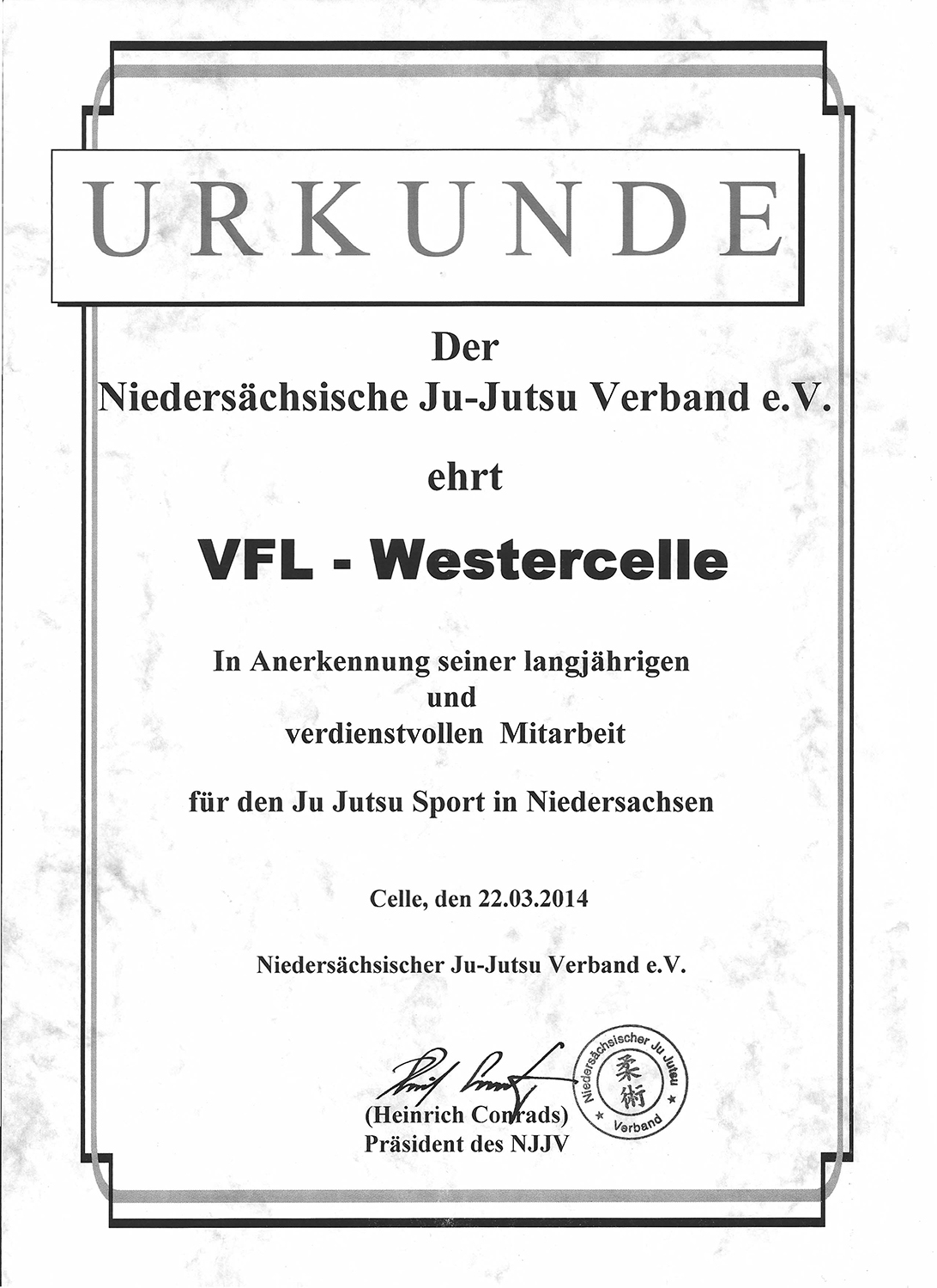 22.03.2014 Urkunde Ehrung VfL Westercelle