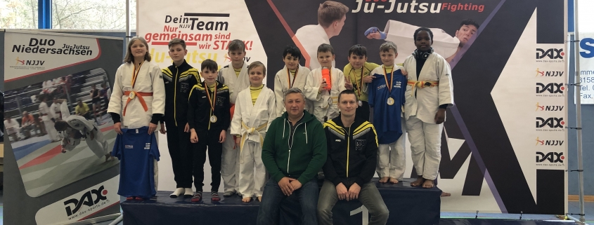 Am 23.03.2019 fanden die Ju-Jutsu-Landeseinzelmeisterschaften in Nienburg statt. 185 Ju-Jutsuka aus 34 Vereinen nahmen daran teil. Vom VfL Westercelle gingen 11 Athletinnen und Athleten auf Medaillenjagd. In der Klasse U10 bis 34 kg kam es gleich im ersten Kampf zu einem vereinsinternen Duell zwischen Andreas Scholl und Hugo Bartz, in dem sich Hugo knapp nach Punkten durchsetzen konnte. Leider konnte er in den nachfolgenden Kämpfen nicht mehr ganz an diese Leistung anknüpfen, gewann aber dennoch die Bronzemedaille. Andreas konnte die Niederlage schnell abhaken, gewann die nachfolgenden Kämpfe und konnte sich so noch den 1. Platz erkämpfen. In der Klasse U10 bis 40 kg trafen mit Bela Schudlik und Hassan Issa ebenfalls zwei Vereinskameraden aufeinander. Konnte sich Hassan bei der REM noch durchsetzen, behielt dieses Mal Bela die Oberhand. Im weiteren Verlauf des Turniers mussten sich beide leider noch dem späteren Landesmeister geschlagen geben. Am Ende konnte sich Bela über Silber und Hassan über Bronze freuen. Mit einer Niederlage startete Dennis Akimov in der Klasse U12 bis 38 kg ins Turnier. Davon ließ er sich aber nicht entmutigen und erreichte mit zwei darauffolgenden Siegen dennoch das Halbfinale. Hier musste er sich leider geschlagen geben und gewann die Bronzemedaille. In der Klasse U12 +48 kg gewann Isha Njingo ihre Kämpfe souverän und konnte sich wie im Vorjahr die Goldmedaille umhängen. Seinen Titel verteidigen wollte auch Justin Gramlich in der Klasse U14 bis 30 kg. Gleich im ersten Kampf musste er sich gegen seinen Dauerrivalen aus Delmenhorst behaupten. Konnte er vorher noch keinen Sieg gegen ihn erringen, sollte es dieses Mal klappen. Justin setzte die taktischen Vorgaben seiner Trainer sehr gut um und konnte den Kampf nach Punkten für sich entscheiden. Im zweiten Kampf konnte er sich erst in der Verlängerung gegen einen starken Gegner vom ausrichtenden Verein TKW Nienburg durchsetzen. Beide Kämpfe hatten viel Kraft gekostet und so brauchte Justin seine ganze Erfahrung um auch den letzten Kampf zu gewinnen und belegte damit erneut den ersten Platz. In der Klasse U16 bis 50 kg ging Marc Marx an den Start. Auch Simon Laukart wurde wegen fehlender Gegner von der U14 in diese Kategorie hochgestuft. Trotz einer engagierten Leistung musste sich Simon seinen Kontrahenten geschlagen geben und belegte am Ende den 5. Platz. Marc hatte dagegen bessere Chance, leistete sich aber zu viele entscheidende Fehler und musste sich zum Schluss mit dem 4. Platz zufriedengeben, schaffte damit aber trotzdem die Qualifikation für die Norddeutschen Meisterschaften. Keinen guten Tag erwischte Marleen Krüger in der Klasse U16 bis 57 kg. Sie hatte ihren gegnerischen Ju-Jutsuka nicht viel entgegenzusetzen, musste zudem im letzten Kampf verletzt aufgeben und belegte den vierten Platz. In dieselbe Alters- und Gewichtsklasse wurde Kristin Raddatz wegen mangelnder Gegnerinnen hochgestuft. Davon ließ sie sich aber nicht beeindrucken und gewann alle Kämpfe mit taktischem Geschick und großem Durchsetzungswillen. Krankheitsbedingt nicht antreten konnte die aktuelle Deutsche Schülermeisterin Melissa Chevalier. Allerdings war sie schon zuvor für die Norddeutschen Meisterschaften qualifiziert.