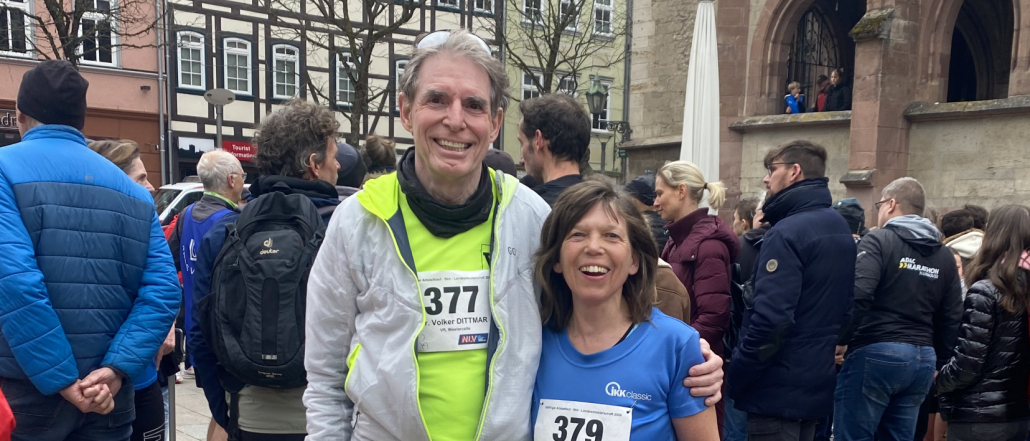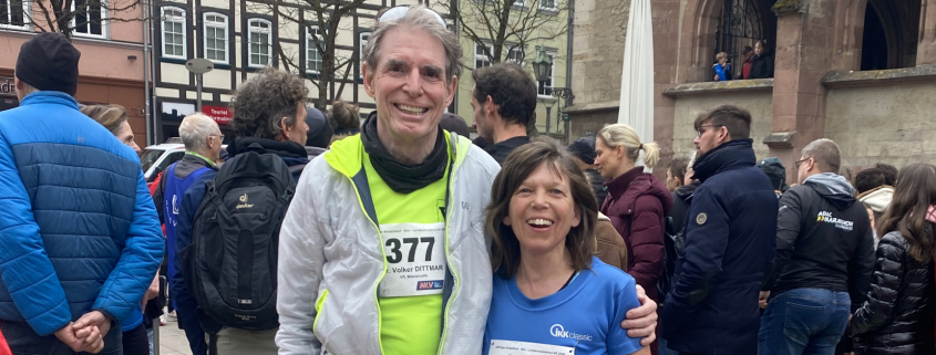 Sonja und Daniel Beer absolvierten die gesamte Distanz gemeinsam. Unterwegs entstanden zahlreiche Gespräche mit anderen Läuferinnen und Läufern, es wurde gegenseitig motiviert, gelacht und auch schweigend nebeneinander gelaufen. „Viele starten aus einer ähnlichen inneren Haltung heraus. Das verbindet“, berichten sie.
