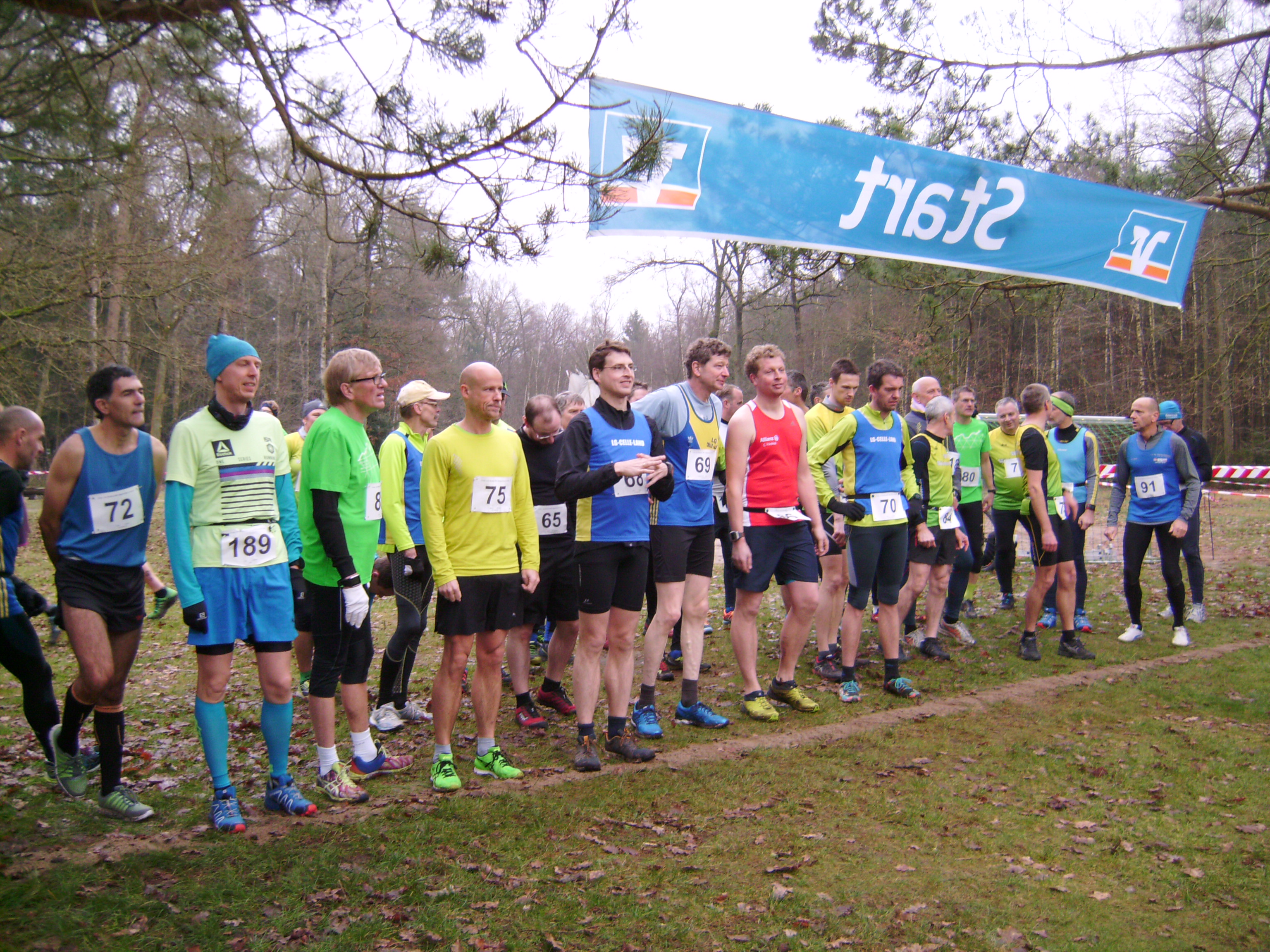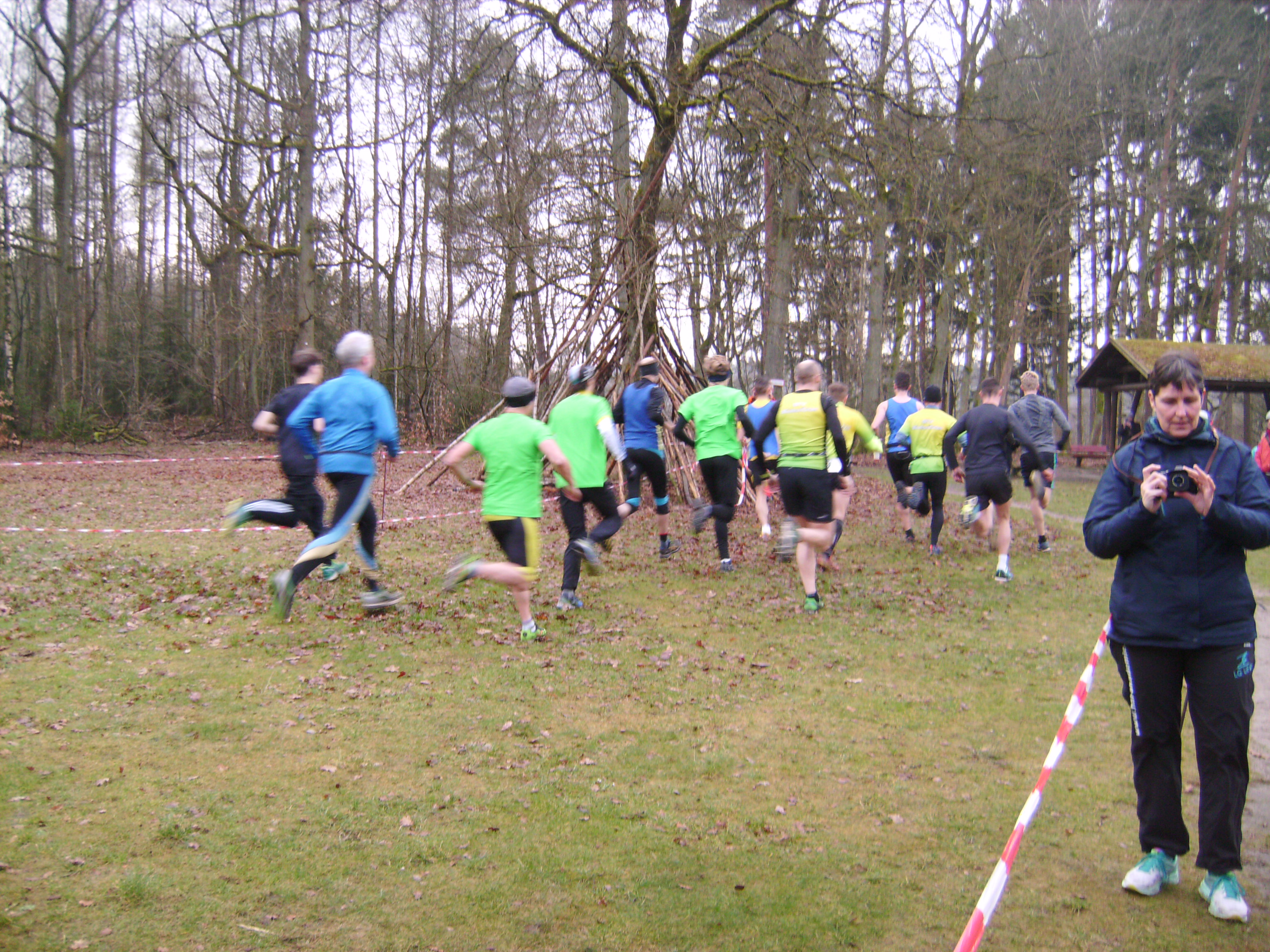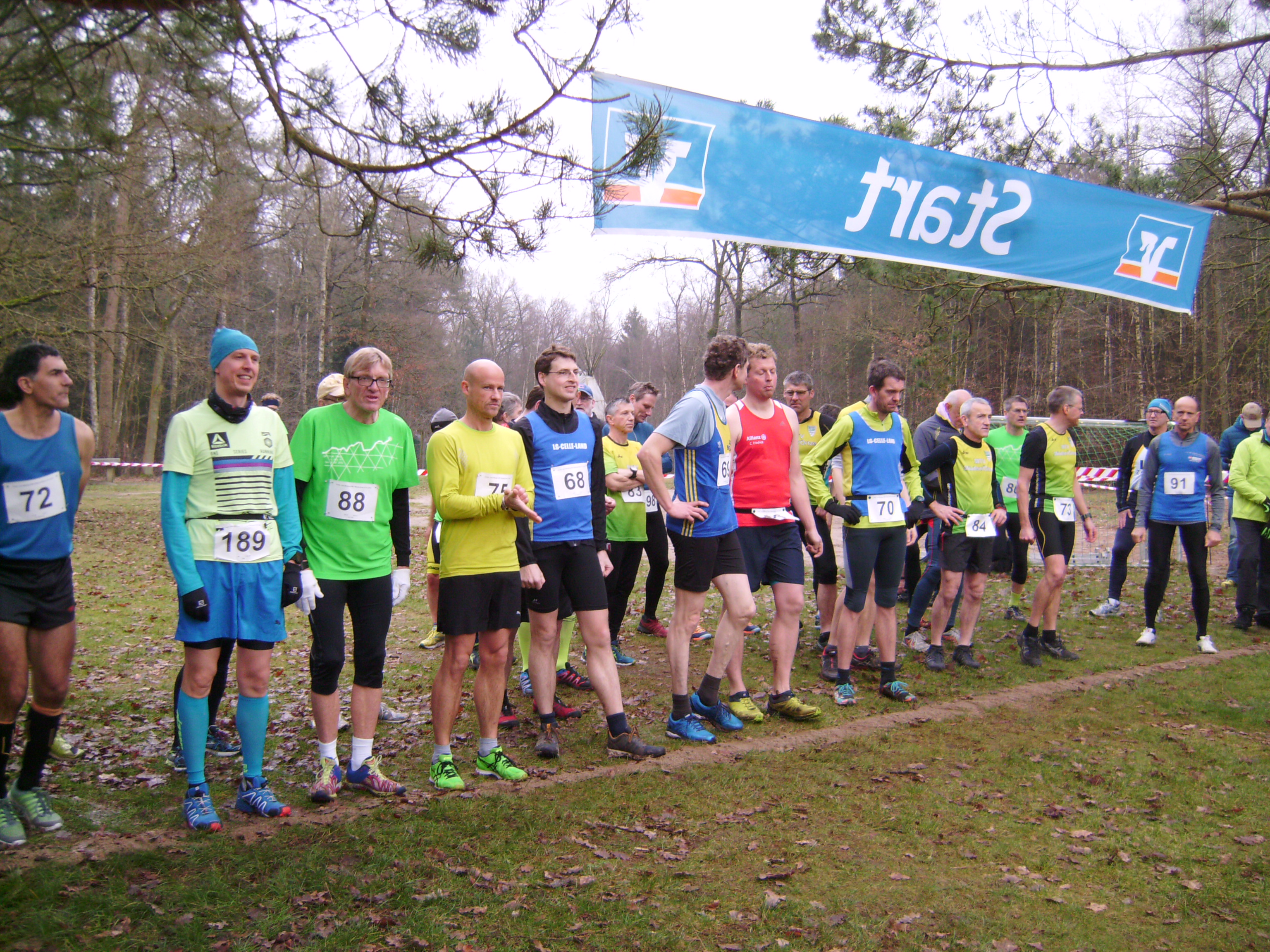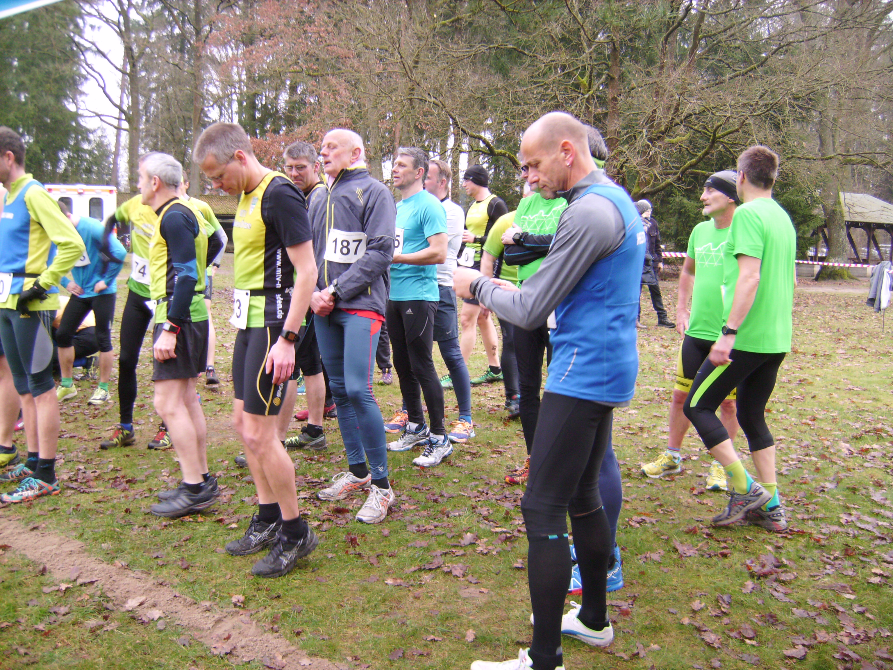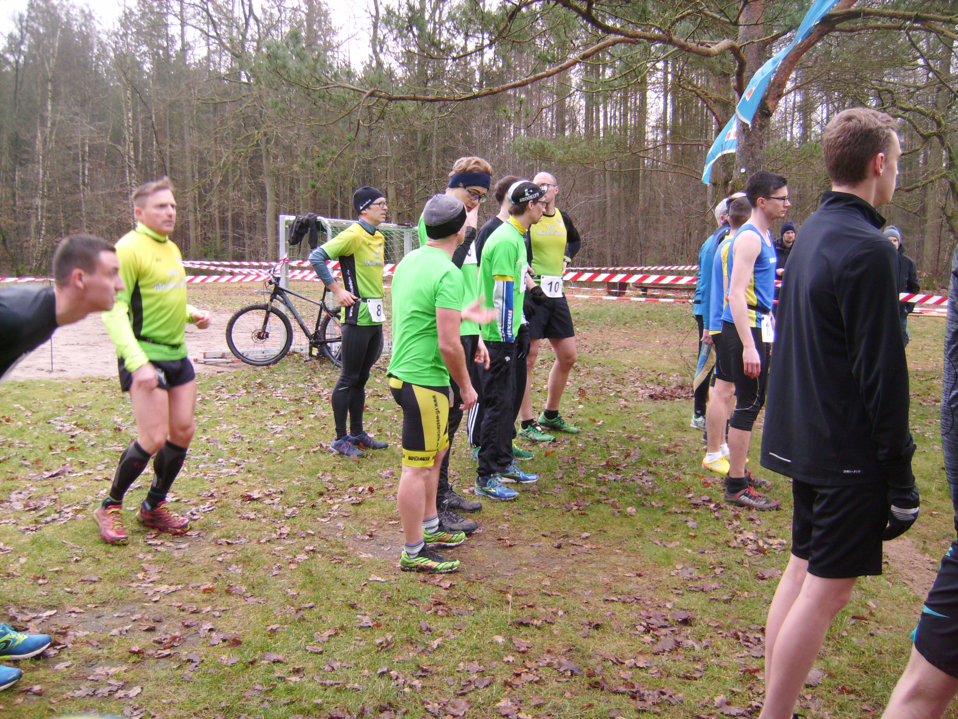 Zur Bezirksmeisterschaft nach Zeven reiste man dann bereits eine Woche später gemeinsam im VW-Bus mit einem etwas reduziertem Team aus 5 Triathleten plus Marion Suchy vom TuS Celle 92 an. Schon die lockere und lustige Hinfahrt und auch die gemeinsame Einlaufrunde machte Lust auf den Start. Die Temperaturen knapp über null Grad und teils tiefes und matschiges Gelände in einem Waldstück in der Ahe, ließen den viermal zu laufenden etwa 1.850m Rundkurs ohne Cross-Laufschuhe für den ein oder anderen Teilnehmer zu einer kleinen Rutschpartei ausarten. Dennoch erwies er sich als ein schneller Kurs, da kaum profiliert. Diesmal gab es einen gemeinsamen Start der Seniorinnen und Senioren über die 7.400m Langstrecke, so dass es für uns keine langen Wartezeiten gab. Die Umkleidemöglichkeiten und Toilettenräume erwiesen sich als sehr spartanisch und die Toiletten mussten sogar nach Überschwemmung komplett abgesperrt werden. Schade eigentlich auch, dass die Siegerehrungen aufgrund der Räumlichkeiten recht bescheiden draußen ausgetragen werden mussten.