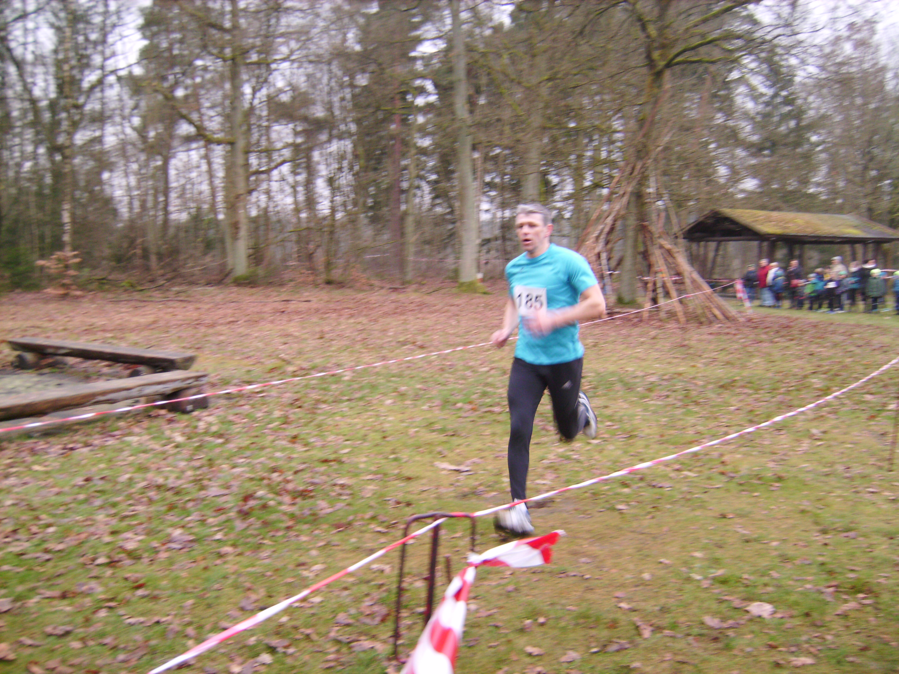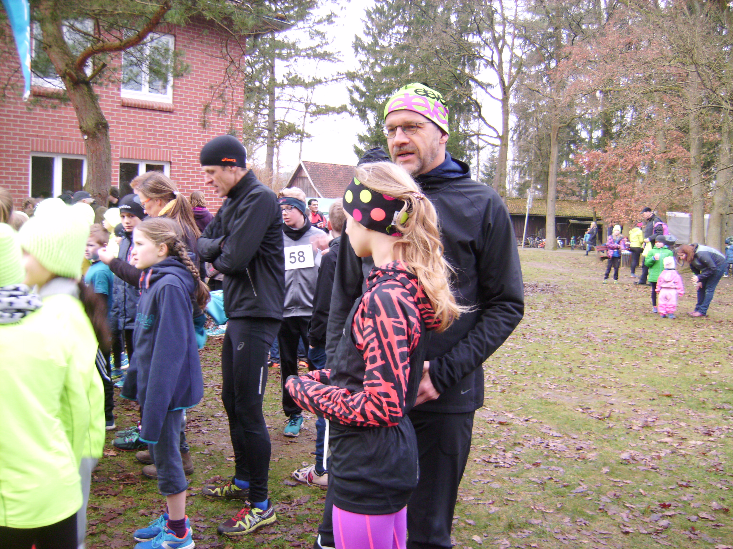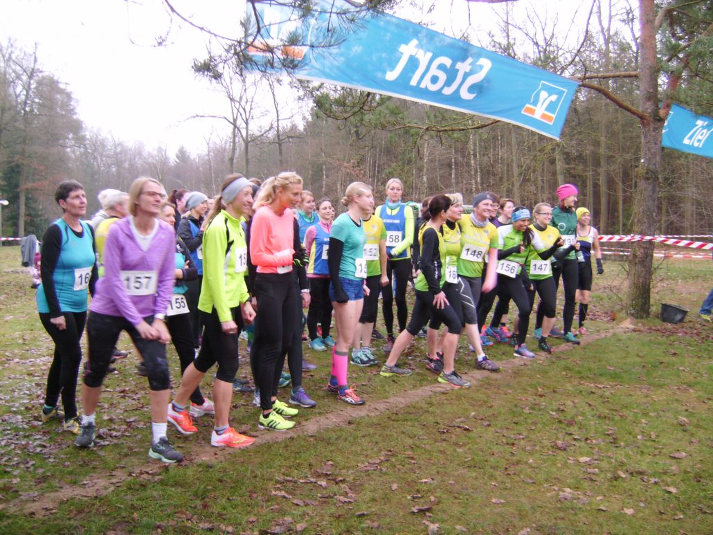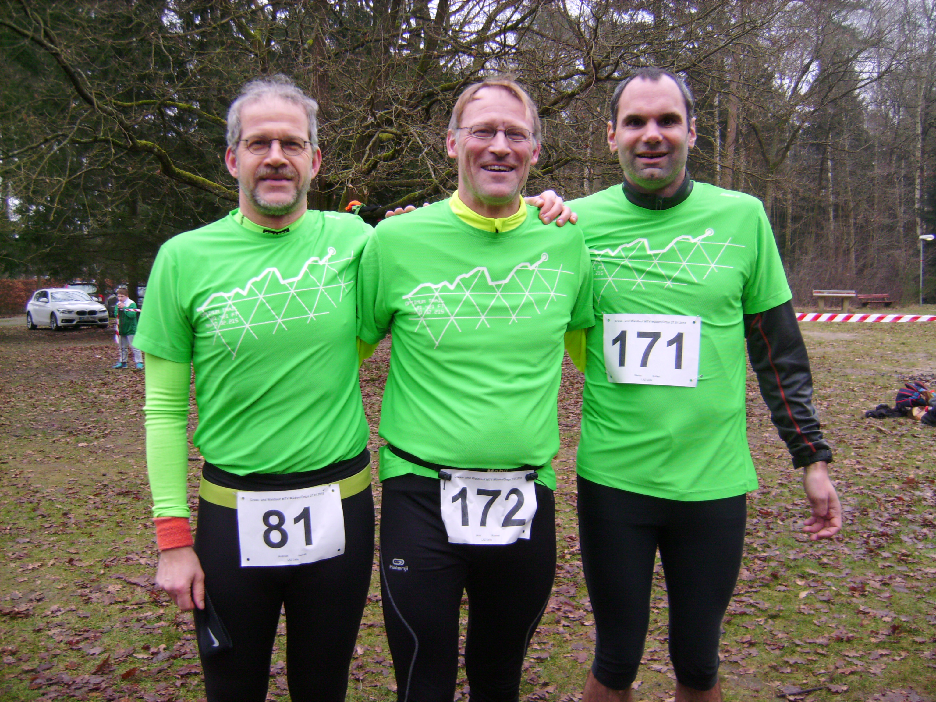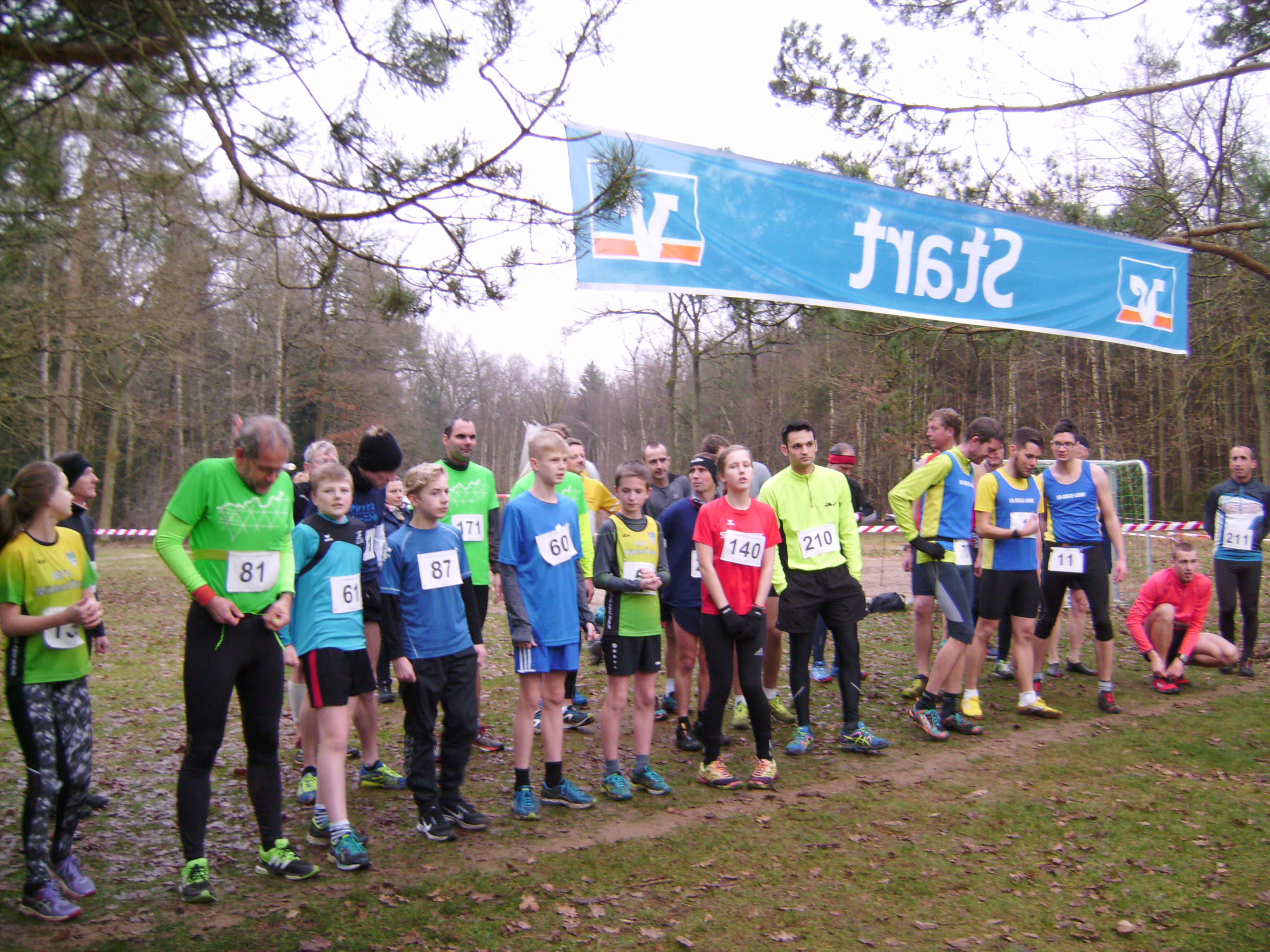 Zur Bezirksmeisterschaft nach Zeven reiste man dann bereits eine Woche später gemeinsam im VW-Bus mit einem etwas reduziertem Team aus 5 Triathleten plus Marion Suchy vom TuS Celle 92 an. Schon die lockere und lustige Hinfahrt und auch die gemeinsame Einlaufrunde machte Lust auf den Start. Die Temperaturen knapp über null Grad und teils tiefes und matschiges Gelände in einem Waldstück in der Ahe, ließen den viermal zu laufenden etwa 1.850m Rundkurs ohne Cross-Laufschuhe für den ein oder anderen Teilnehmer zu einer kleinen Rutschpartei ausarten. Dennoch erwies er sich als ein schneller Kurs, da kaum profiliert. Diesmal gab es einen gemeinsamen Start der Seniorinnen und Senioren über die 7.400m Langstrecke, so dass es für uns keine langen Wartezeiten gab. Die Umkleidemöglichkeiten und Toilettenräume erwiesen sich als sehr spartanisch und die Toiletten mussten sogar nach Überschwemmung komplett abgesperrt werden. Schade eigentlich auch, dass die Siegerehrungen aufgrund der Räumlichkeiten recht bescheiden draußen ausgetragen werden mussten.