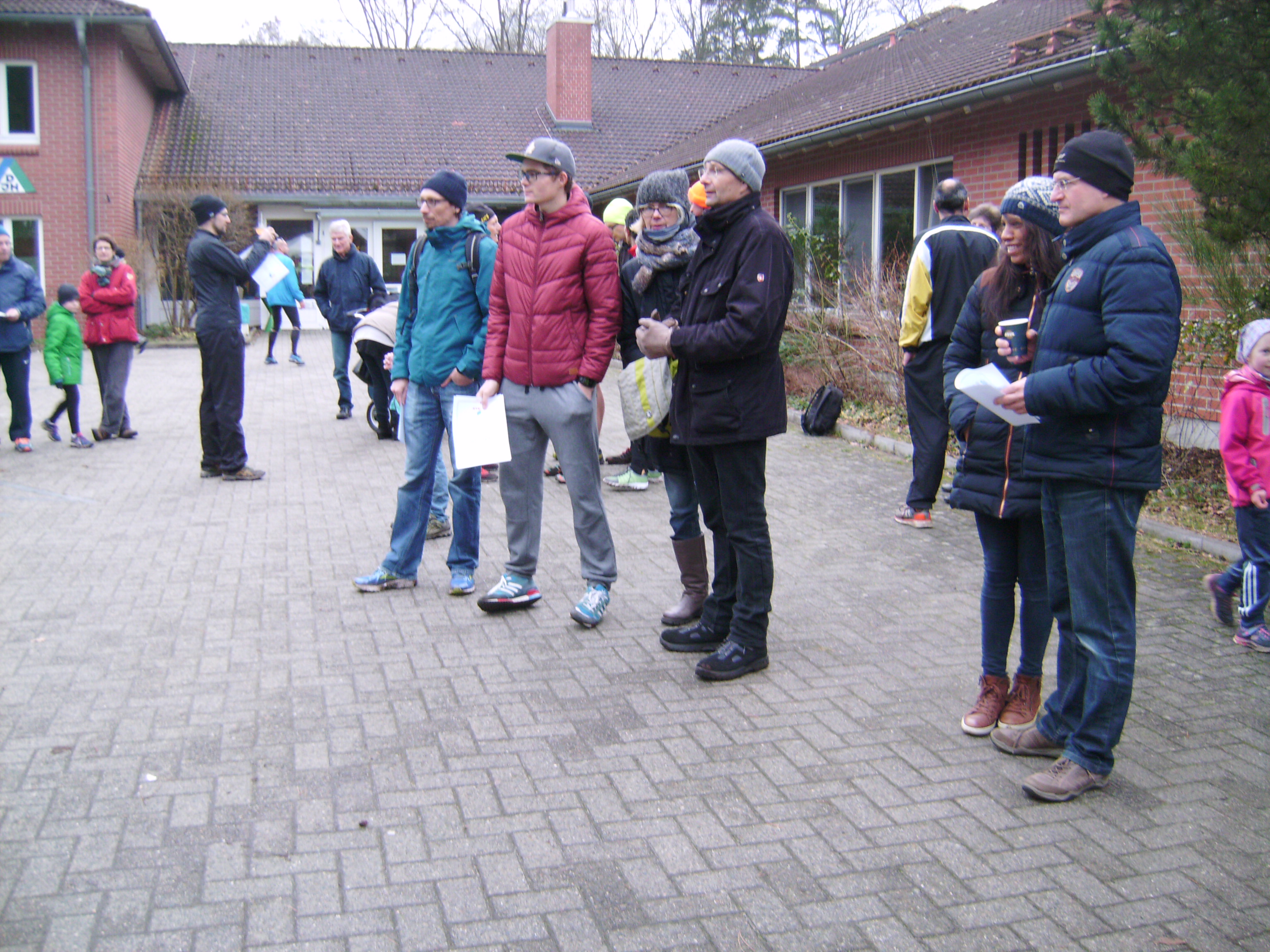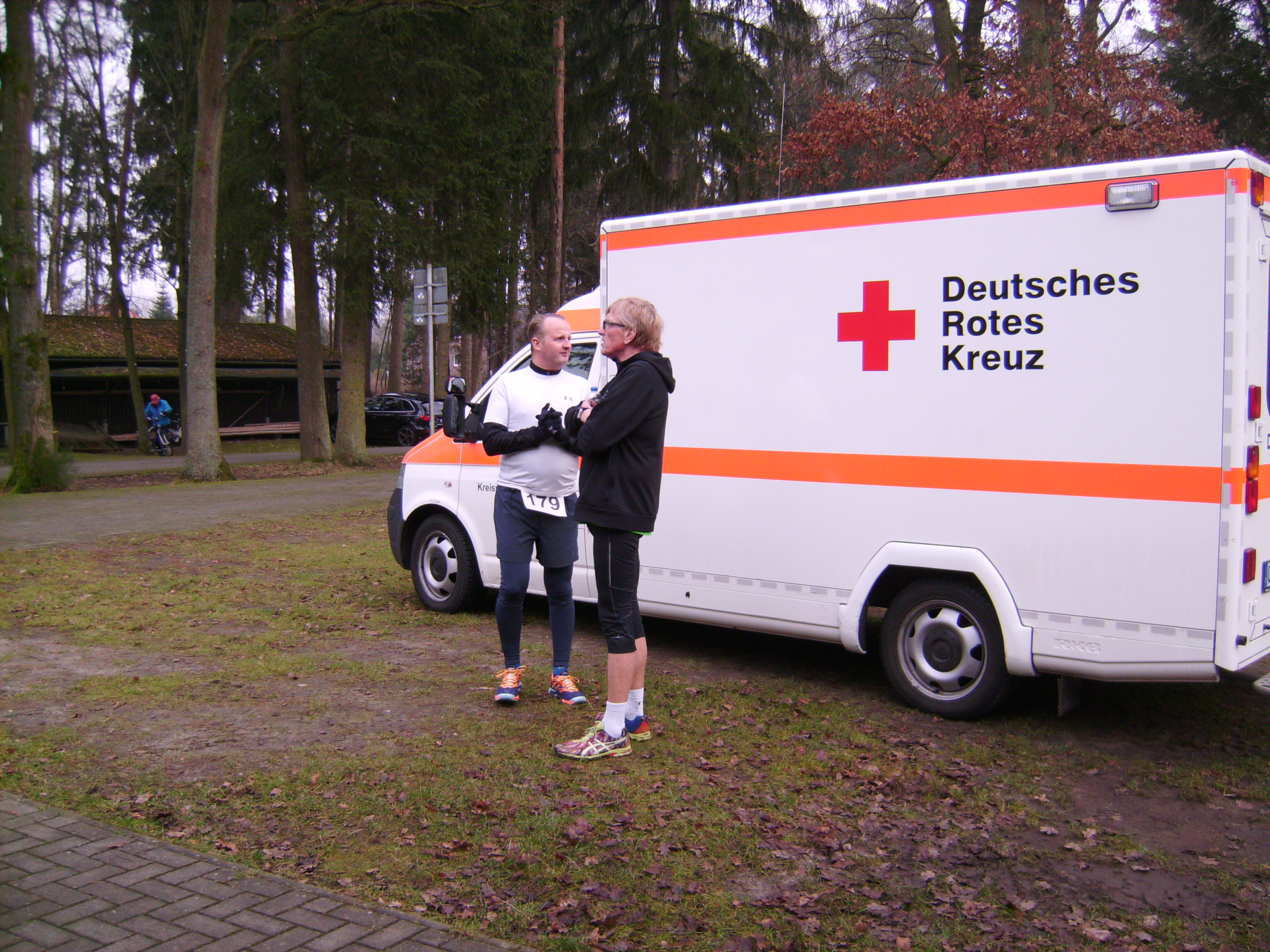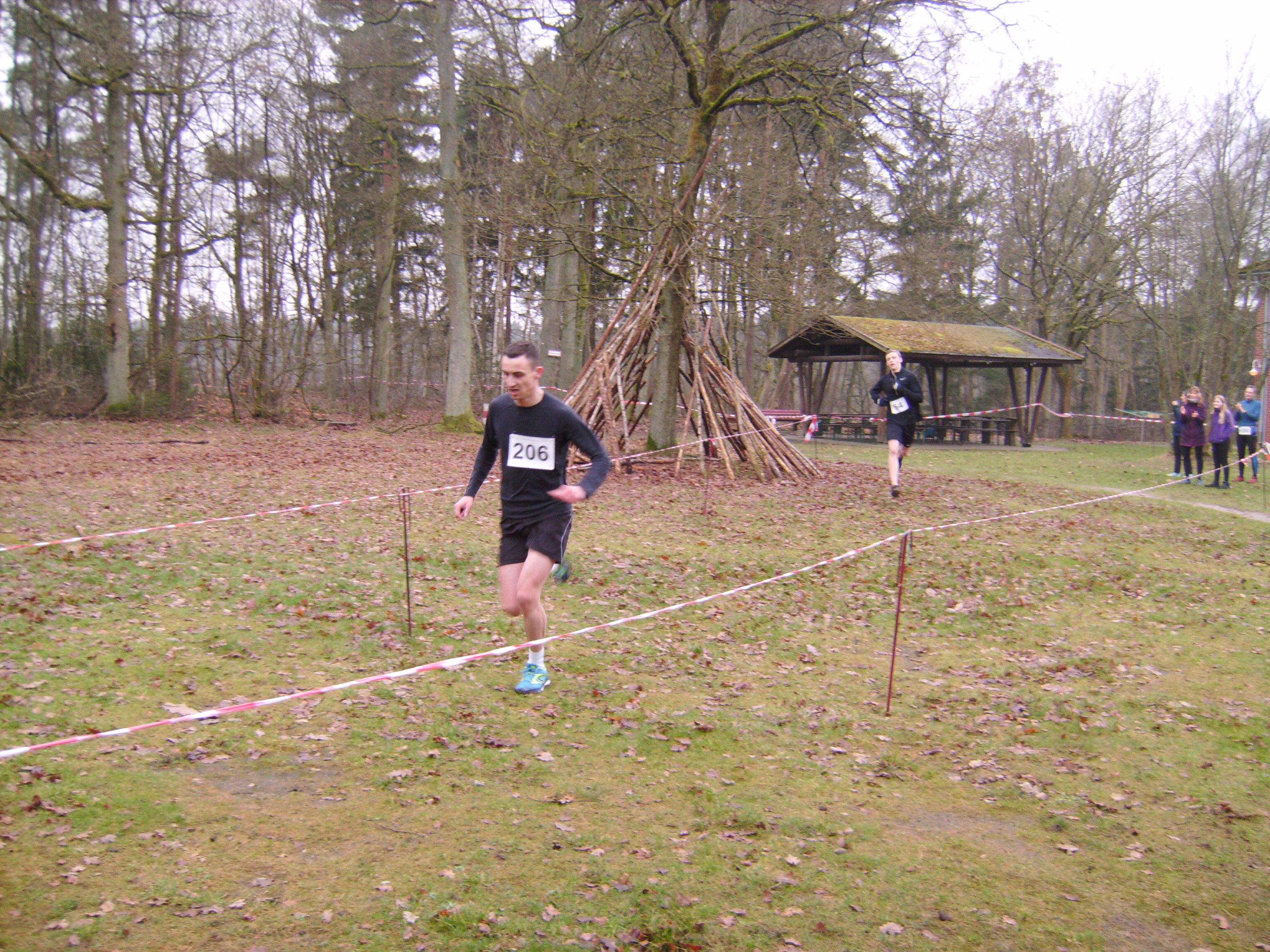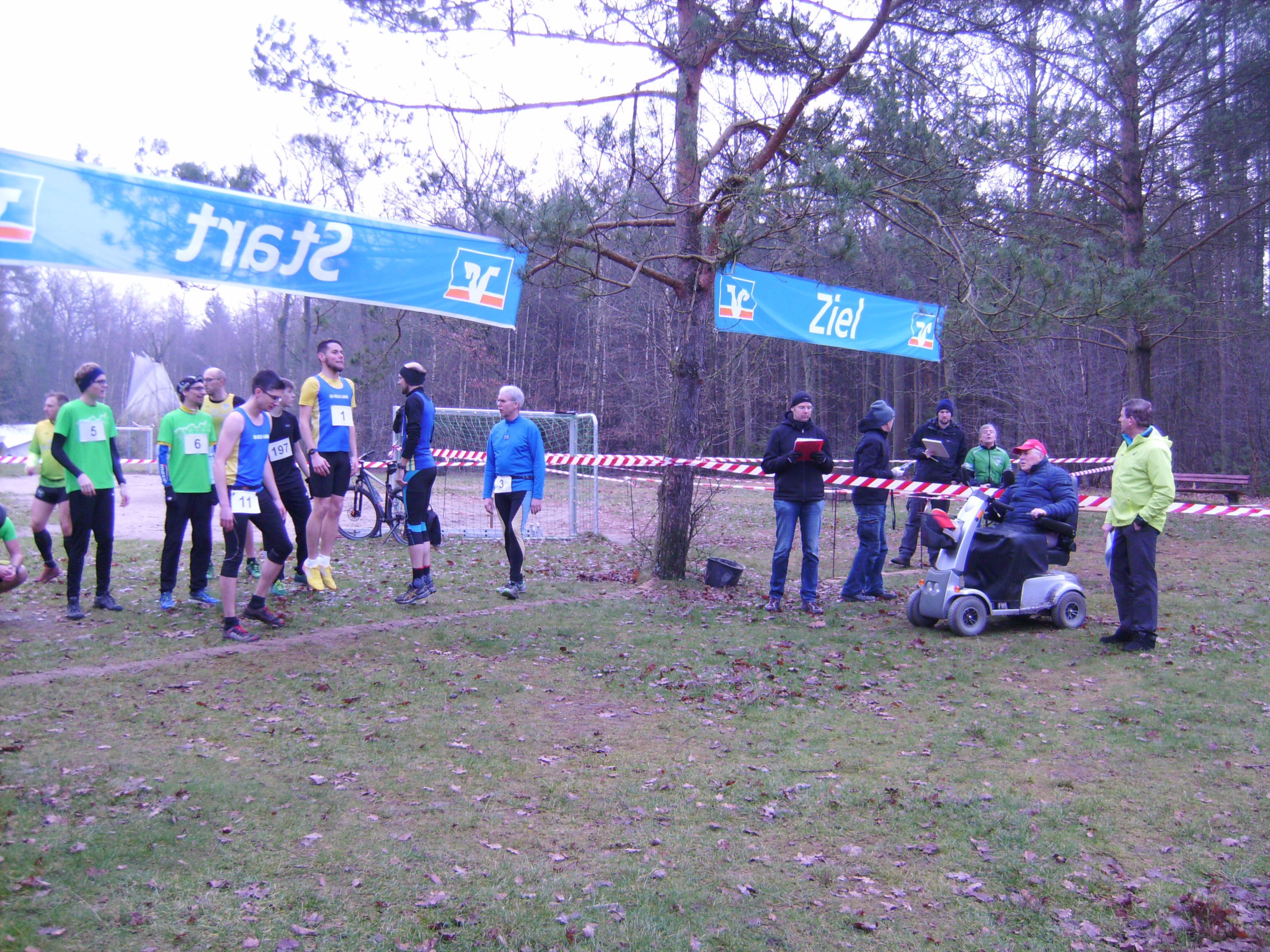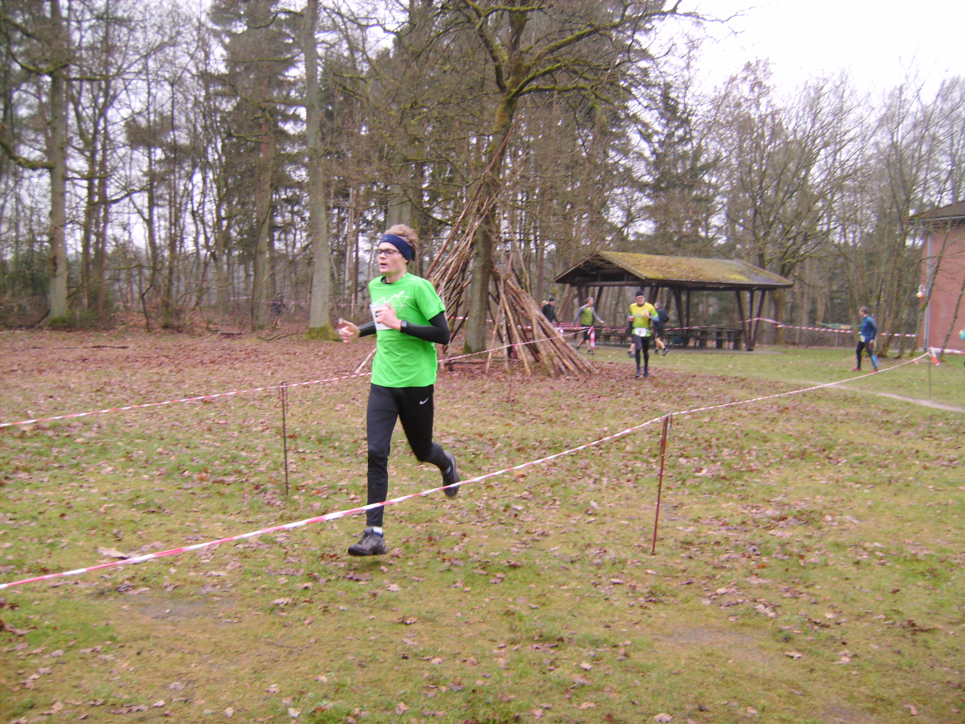 Zur Bezirksmeisterschaft nach Zeven reiste man dann bereits eine Woche später gemeinsam im VW-Bus mit einem etwas reduziertem Team aus 5 Triathleten plus Marion Suchy vom TuS Celle 92 an. Schon die lockere und lustige Hinfahrt und auch die gemeinsame Einlaufrunde machte Lust auf den Start. Die Temperaturen knapp über null Grad und teils tiefes und matschiges Gelände in einem Waldstück in der Ahe, ließen den viermal zu laufenden etwa 1.850m Rundkurs ohne Cross-Laufschuhe für den ein oder anderen Teilnehmer zu einer kleinen Rutschpartei ausarten. Dennoch erwies er sich als ein schneller Kurs, da kaum profiliert. Diesmal gab es einen gemeinsamen Start der Seniorinnen und Senioren über die 7.400m Langstrecke, so dass es für uns keine langen Wartezeiten gab. Die Umkleidemöglichkeiten und Toilettenräume erwiesen sich als sehr spartanisch und die Toiletten mussten sogar nach Überschwemmung komplett abgesperrt werden. Schade eigentlich auch, dass die Siegerehrungen aufgrund der Räumlichkeiten recht bescheiden draußen ausgetragen werden mussten.