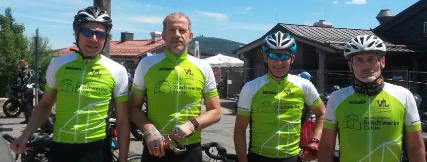 Auch in Corona-Zeiten machte sich eine kleine 4er Gruppe vom VfL Westercelle auf. Los ging es für Knud, Hasko und Thorsten aus Celle und Andreas vom Arendsee in der Früh um 7.30 Uhr, um dann am Treffpunkt vom Parkplatz an der Trabrennbahn in Bad Harzburg gemeinsam eine rund 80 Kilometer Straßentrainingseinheit über Goslar, Kreuzeck, an Hahnenklee vorbei, Lautenthal runter kachelnd und wieder raufkletternd, über Zellerfeld, Oberschulenberg hoch, an der Okertalsperre vorbei, Gemkenthal, dann den finalen 7 km Anstieg ab Altenau zum Torfhaus jeder in seinem Tempo hoch krackselnd. Dann schnell Fotos gemacht und ab ging es die Abfahrt auf der Hauptstraße hinunter mit Tempo 70 km/h plus in Richtung Bad Harzburg zurück. Dort zusammen schnell ein leckeres Eis als kleine Belohnung für die nette Bergfahrttrainingseinheit eingesogen und ab zu den Autos um wieder heimwärts zu fahren. Das Wetter spielte hervorragend mit, fast schon etwas zu warm, daher sehr schweißtreibend. Unangenehm war diesmal leider der teilweise sehr starke Auto- und Motorradverkehr! Aber damit muss man leben und sich drauf einstellen. So fuhren wir lieber etwas defensiver und gingen kein großes Risiko an kurvigen Abfahrten ein und kamen Gott sei Dank ohne Probleme und Zwischenfälle über den Kurs. Allen Teilnehmern hat es wieder riesigen Spaß gemacht, sodass man bereits die nächste gemeinsame Ausfahrt in den Harz ins Auge fasst.