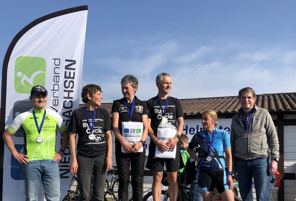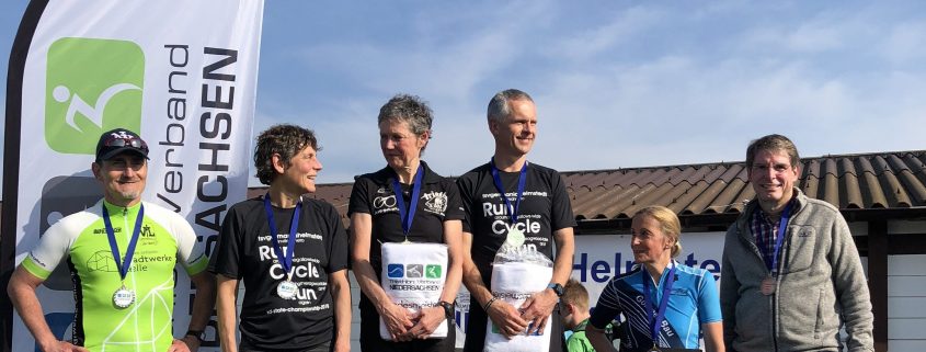 Einen erfolgreichen Saisonstart mit einem kompletten Medaillensatz konnten unsere Sportler bei der Landesmeisterschaft im Crossduathlon in Helmstedt und beim 26. Gartower Seeduathlon verzeichnen. Die Fahrt nach Helmstedt sah bei strömenden Regen zunächst nicht besonders verheißungsvoll für einen Wettkampf aus. Das sollte sich aber pünktlich mittags zur Wettkampfbesprechung ändern und der Himmel riss auf und herrlicher Sonnenschein begleitete die zahlreichen Starter auf einen profilierten und somit anspruchsvollen 1.Laufkurs über insgesamt 4,4 km. Anschließend ging es mit dem MTB am Lappwaldsee vorbei auf eine teils sehr schnelle und 21 km lange Schotterpiste mit reichlich Pfützen und Schlammpassagen gepflastert, über einen Holperacker und auch profilierte Abschnitte sollten nicht fehlen und fanden mit einer Prämienwertung an einem giftigen Anstieg ihren Höhepunkt. Danach ging es nochmals auf den abschließenden 2.Laufkurs über 4,4km und dann abwärts ins Ziel eines gut organisierten Events.
