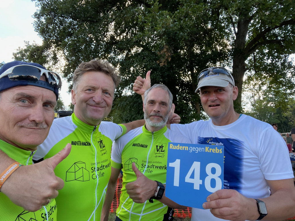 Für eine gute und gemeinnützige Tat benötigte es bei Kersten Kraft (Spartenleiter Volleyball), Thorsten Lübke (Spartenleiter Triathlon/Radsport) und ihren Mitstreitern Bernd Otte (Radsport) und Dr. Hanno Reckmann (Triathlon) keinerlei Überzeugungskraft. Man nahm die Herausforderung gern und mit vollem Eifer an, um das herausragende Celler Benefiz-Event „Rudern gegen Krebs“ an der Ziegeninsel zu unterstützen!