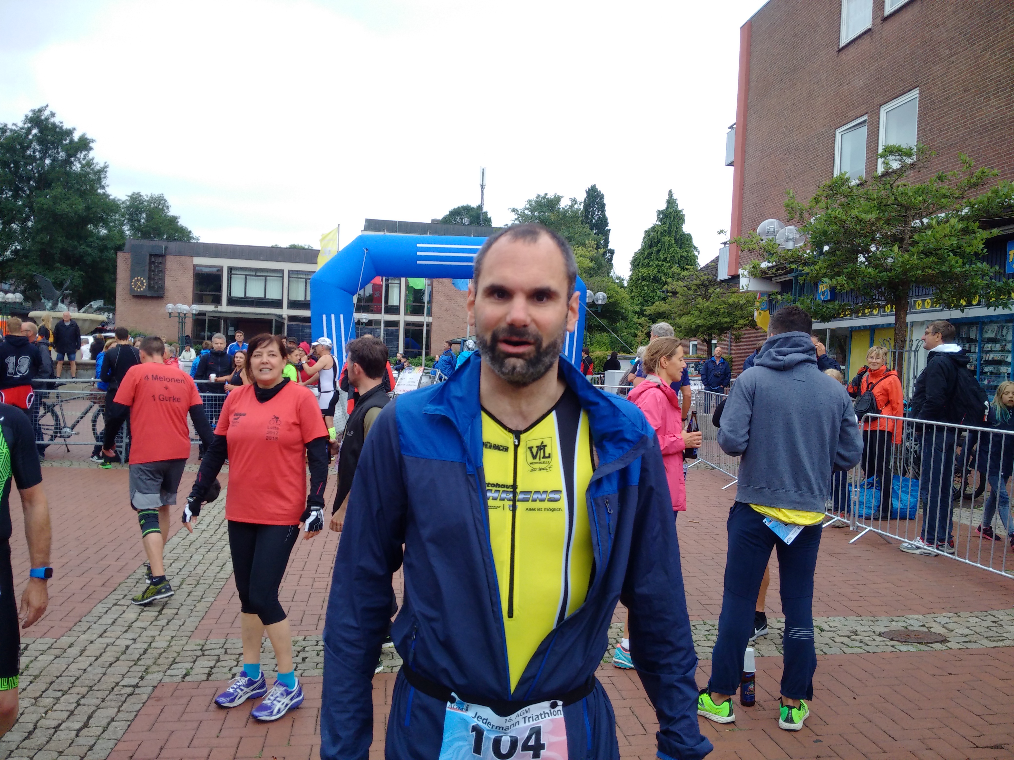 Auch beim Volkstriathlon in Uelzen hatte der Wettergott kein Mitleid und so waren auch dort die Witterungsbedingungen mit geringen Temperaturen, Nieselregen und Wind eher sehr bescheiden. Aber immerhin durften die Teilnehmer/innen aufgrund der niedrigen Wassertemperaturen auch hier mit dem Neoprenanzug schwimmen. David Simmons kam mit diesen Bedingungen hervorragend klar und sicherte sich nach 500 Meter Schwimmen, 25 Kilometer Rad fahren und abschließend 5 Kilometer Laufen in 1:27,16 Std. den 2.Platz in der Altersklasse 60 und damit ebenso der Sprung auf das Podium wie seinem Teamkollegen Henning von Speßhardt, der in der Altersklasse 75 der Sieg gelang.